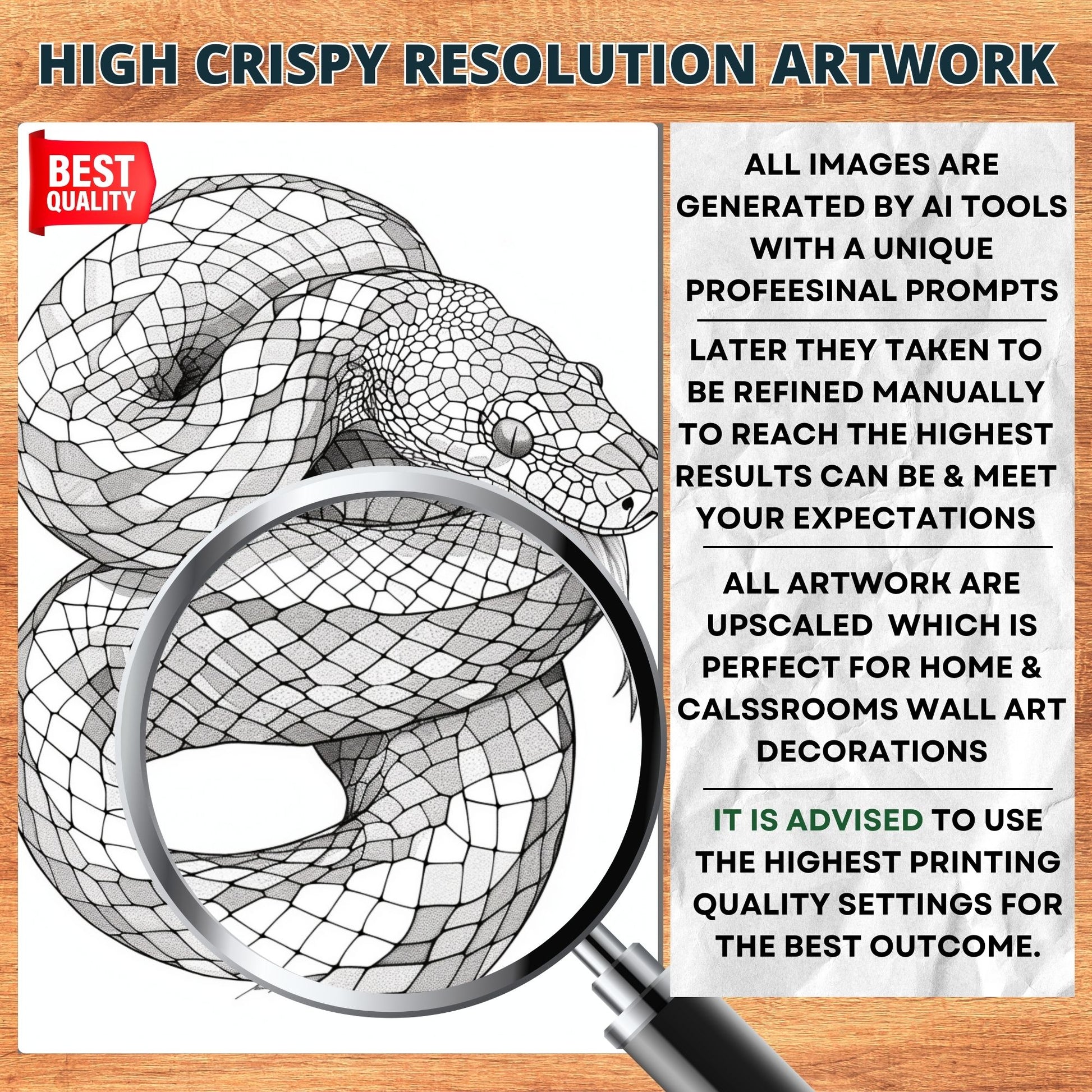 Laissez libre cours à votre créativité avec « Sensationsal Snakes », une collection de livres de coloriage saisissante proposant une variété de motifs uniques sur le thème des serpents. Des spirales élégantes aux scènes mystiques de la jungle, chaque page imprimable vous offre une nouvelle aventure. Parfaite pour les adultes comme pour les enfants, cette collection est idéale pour décompresser, s'amuser et laisser libre cours à son imagination. Téléchargeable instantanément !