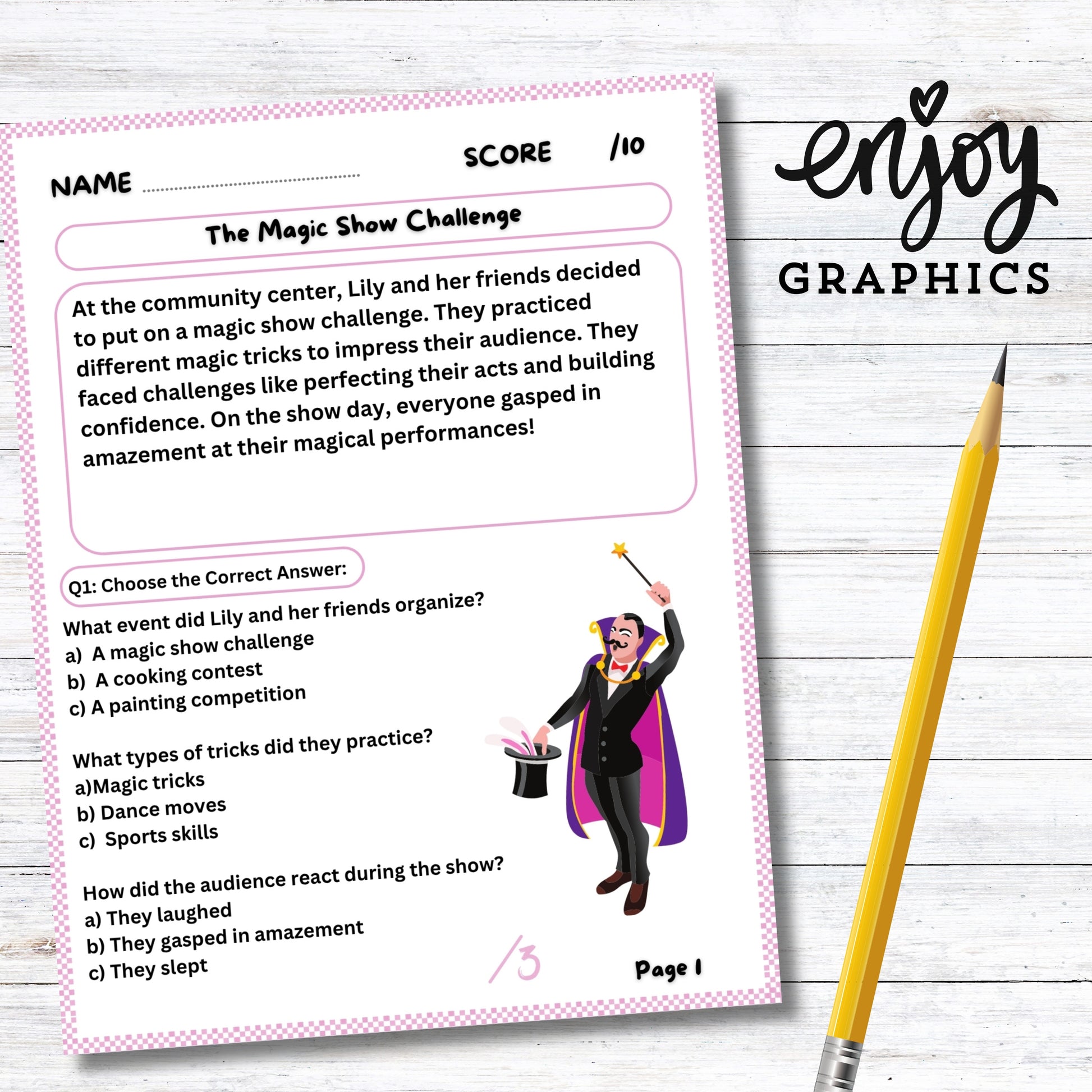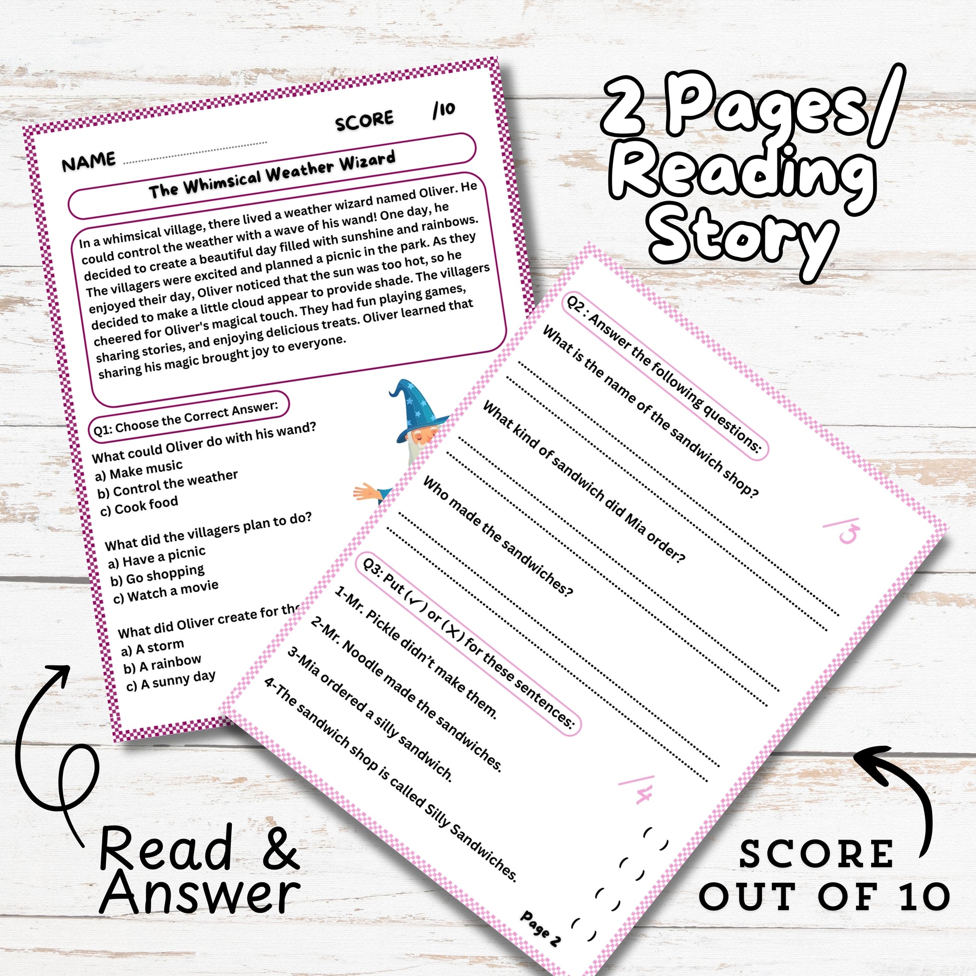Welcome to the reading resource that changes everything! This beautifully designed workbook brings together educational excellence and pure engagement, featuring 25 stories crafted to captivate young minds while building critical comprehension skills. Perfect for parents seeking stress-free homework solutions or teachers needing reliable, print-ready materials that deliver real results. With its vibrant color-coded pages and carefully scaffolded questions, this workbook makes skill-building feel effortless—turning reluctant readers into confident learners who actually enjoy practice time. Start your child's reading success story today!