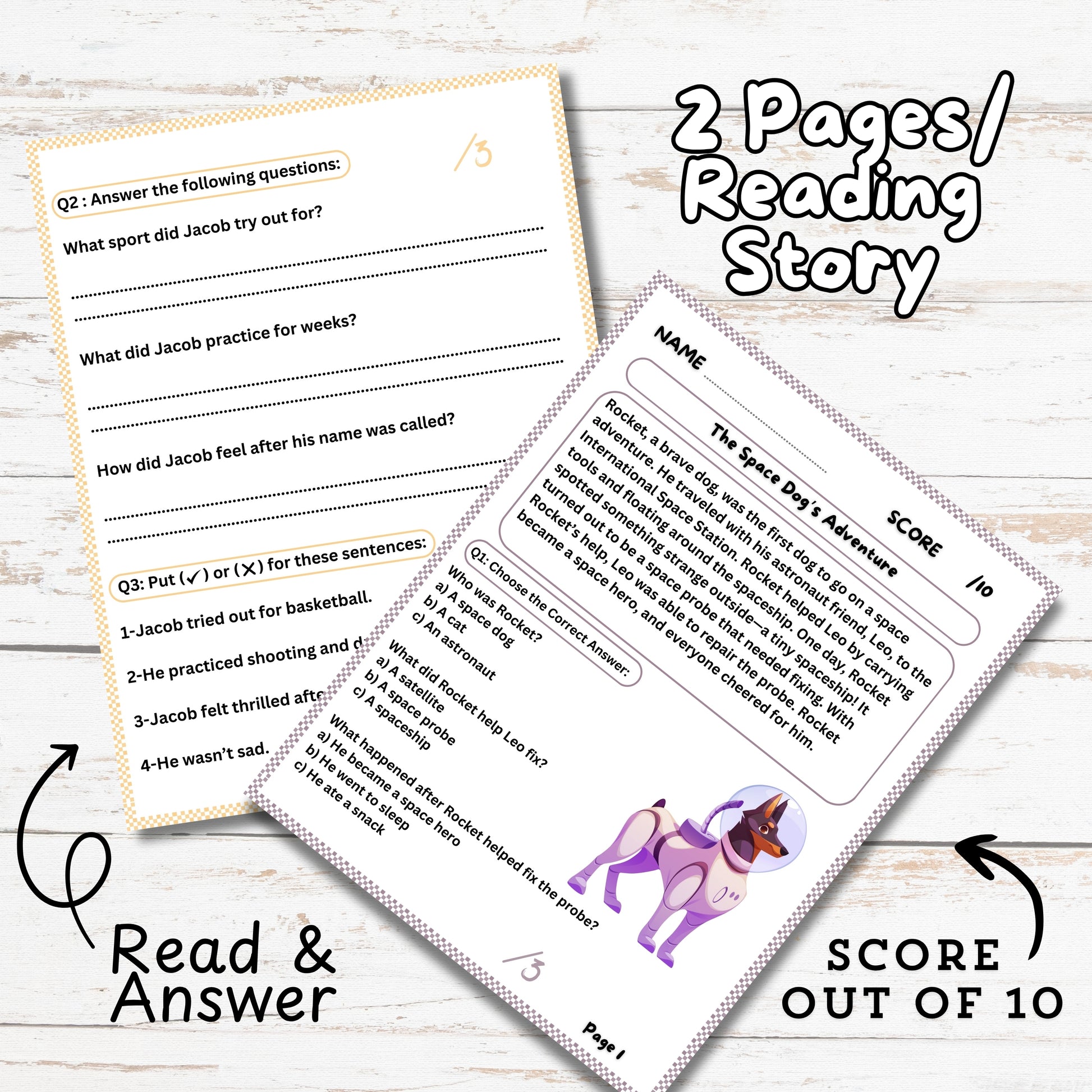 Say goodbye to reading struggles and hello to confident young learners! This carefully designed workbook turns comprehension practice into an adventure your child will actually look forward to. With colorful pages, engaging stories, and just the right level of challenge, it's the perfect solution for parents who want to support their child's literacy journey without the stress. Teachers love it for morning work, literacy centers, and differentiated instruction. Watch reluctant readers become enthusiastic learners—one story at a time!
