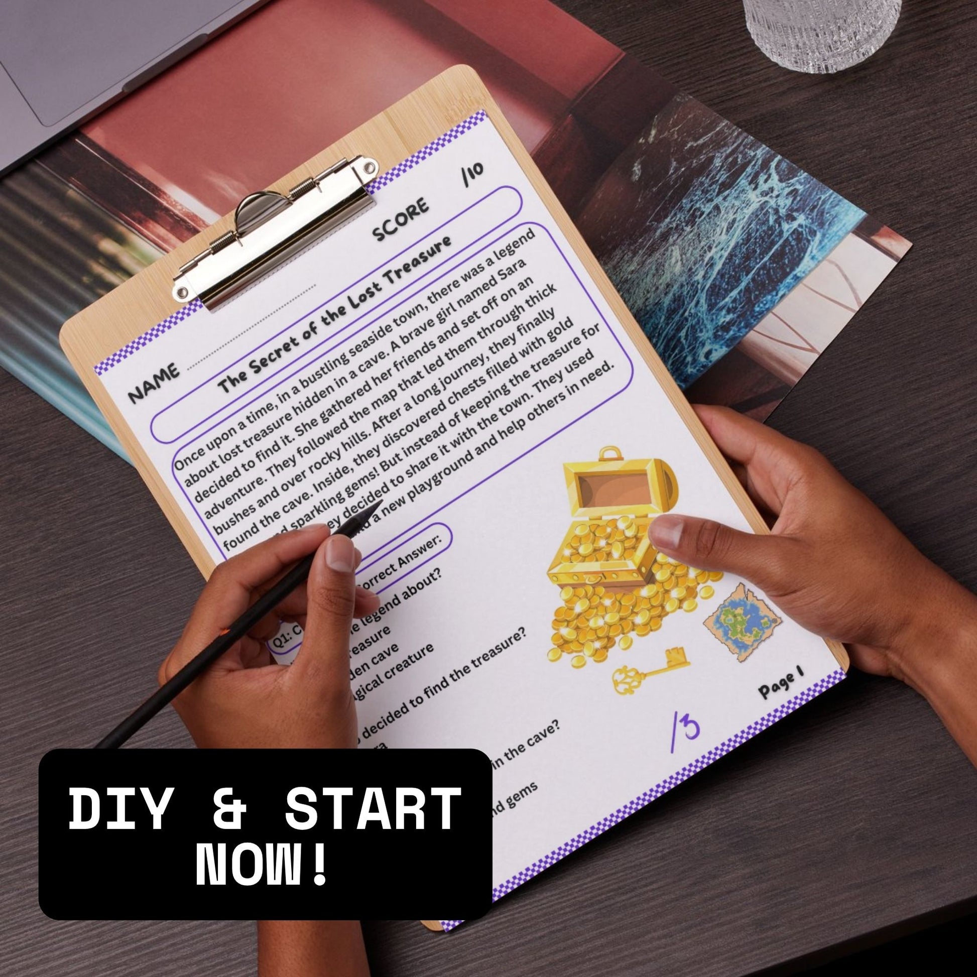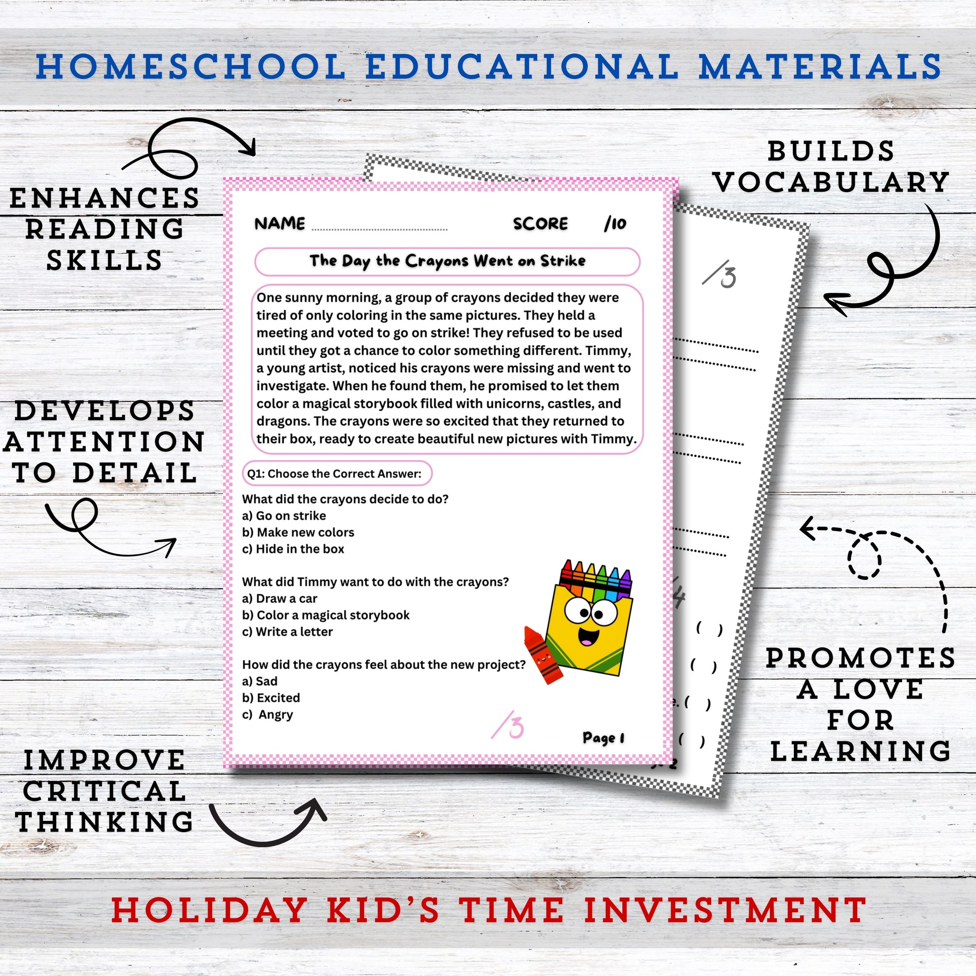 Give your young reader the advantage they deserve with this powerhouse comprehension workbook! Expertly crafted to meet early learners exactly where they are, it transforms essential reading skills into exciting discoveries through 25 captivating stories. Parents love the instant-download convenience and educational rigor, while teachers appreciate the ready-to-use format that saves hours of prep time. With its stunning visual design and carefully scaffolded questions, this workbook makes comprehension practice feel less like homework and more like playtime—delivering results that will make you both proud!