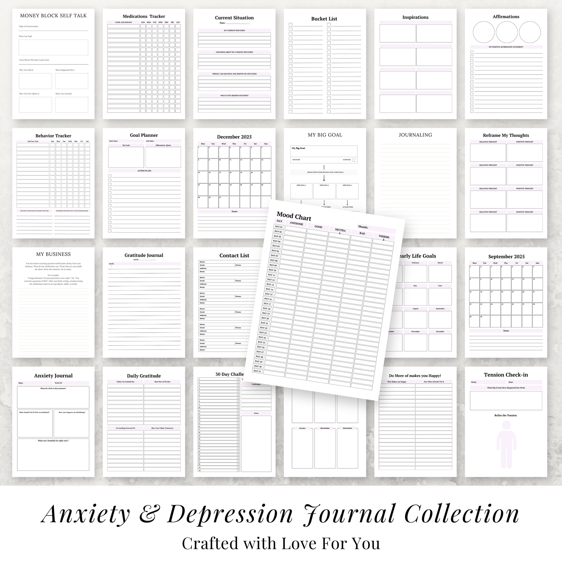• 1 x Anxiety & Depression Journal Bundle (62 pages, US Letter size 8.5" x 11")