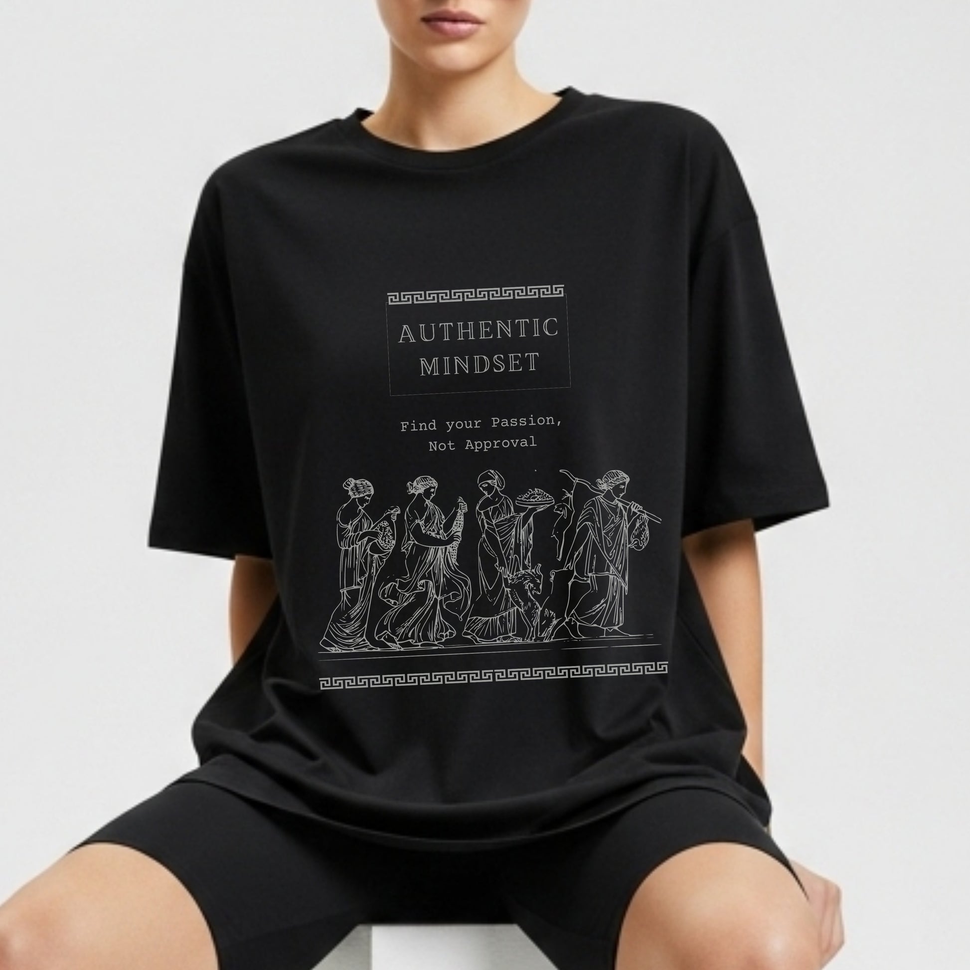 Passion driven. Approval unnecessary. This elegant minimalist design features Greek key borders, classical figures, and "AUTHENTIC MINDSET" with the powerful reminder to "Find your Passion, Not Approval." It's for independent thinkers who understand that pursuing passion matters infinitely more than seeking external validation.