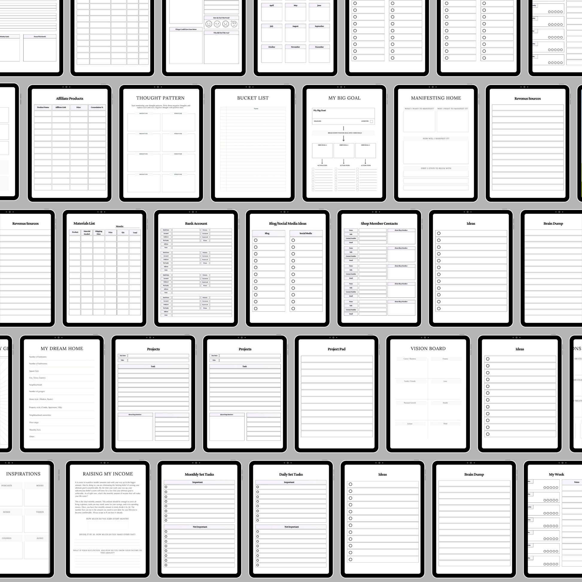 • Productivity & Project Management: Break down your big ideas with a Project Pad, Action Plan, To-Do lists (Business & Personal), Daily Set Tasks, Monthly Set Tasks, and a Brain Dump page.