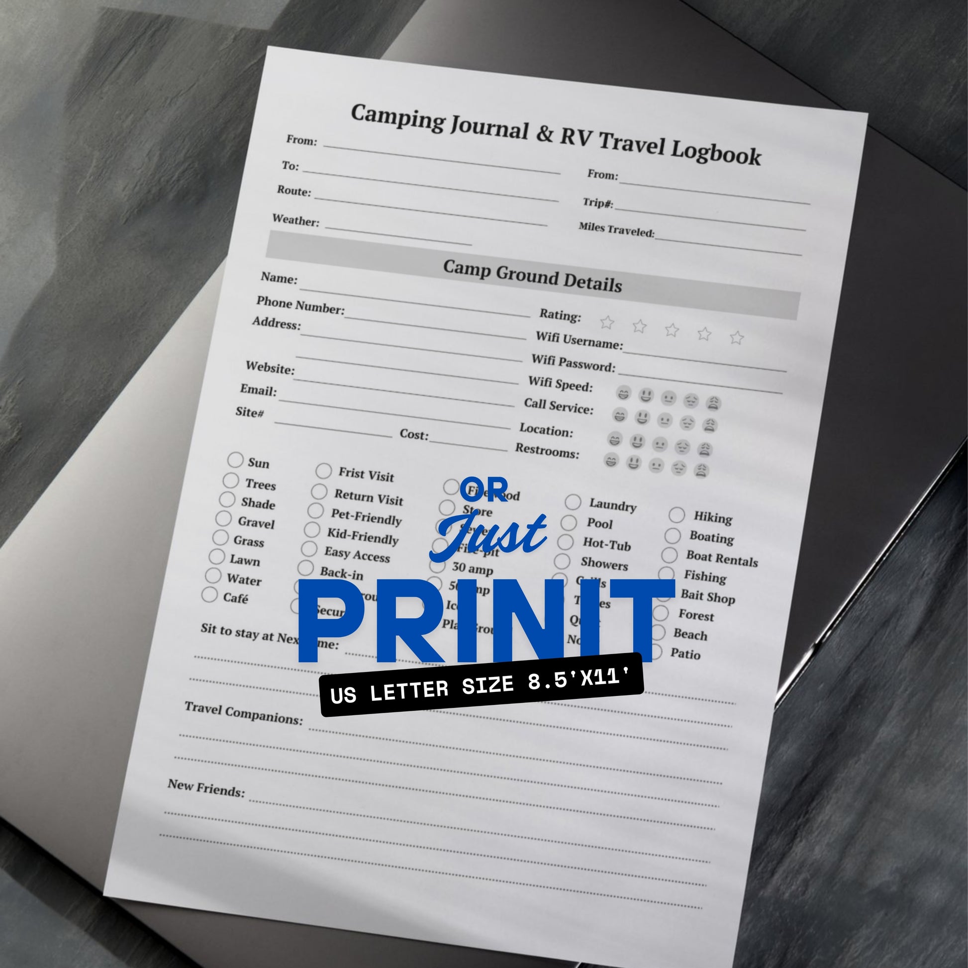 • 2 x PDF Camping Journal & RV Travel Logbook Sheets (US Letter 8.5" x 11")