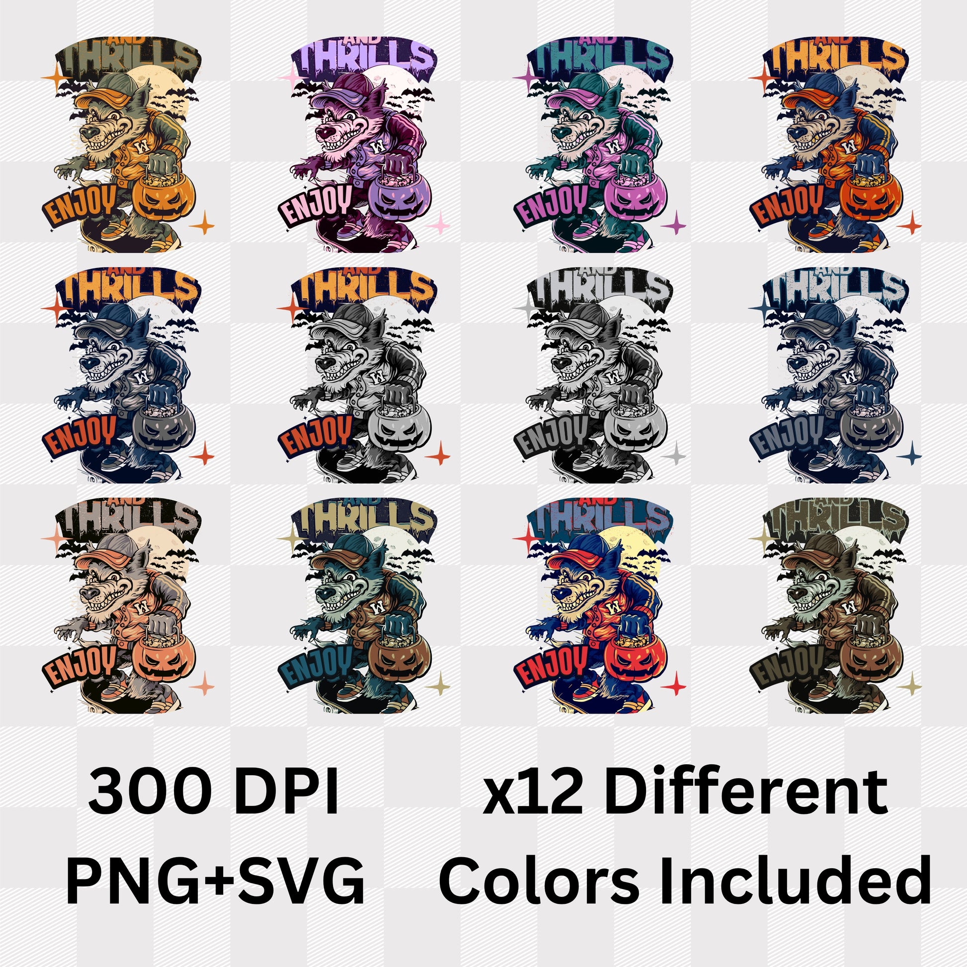 Chills And Thrills Enjoy - Halloween Wolf Skateboard Statement Artwork