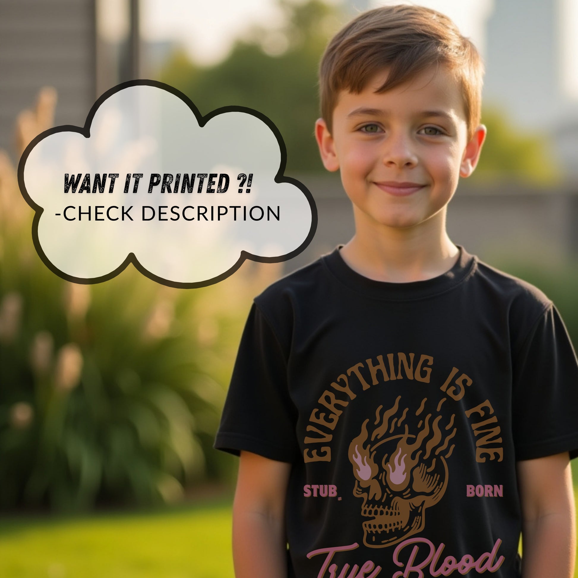 Everything Is Fine True Blood Stubborn - Flaming Skull Heritage Statement Artwork