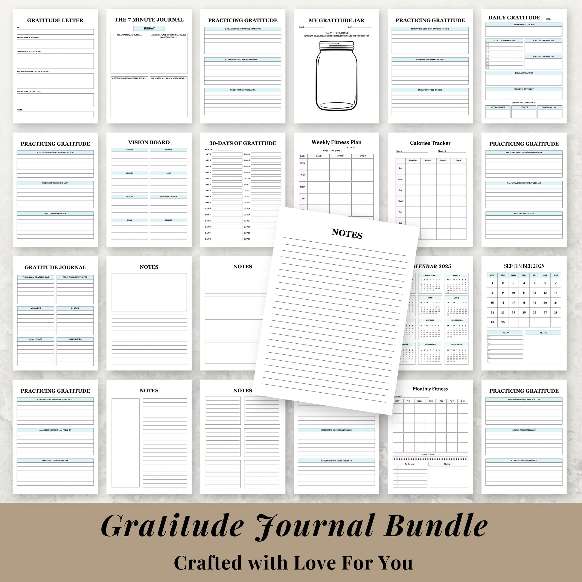 • 1 x Gratitude Journal Bundle 2025 (63 pages, US Letter size 8.5" x 11")