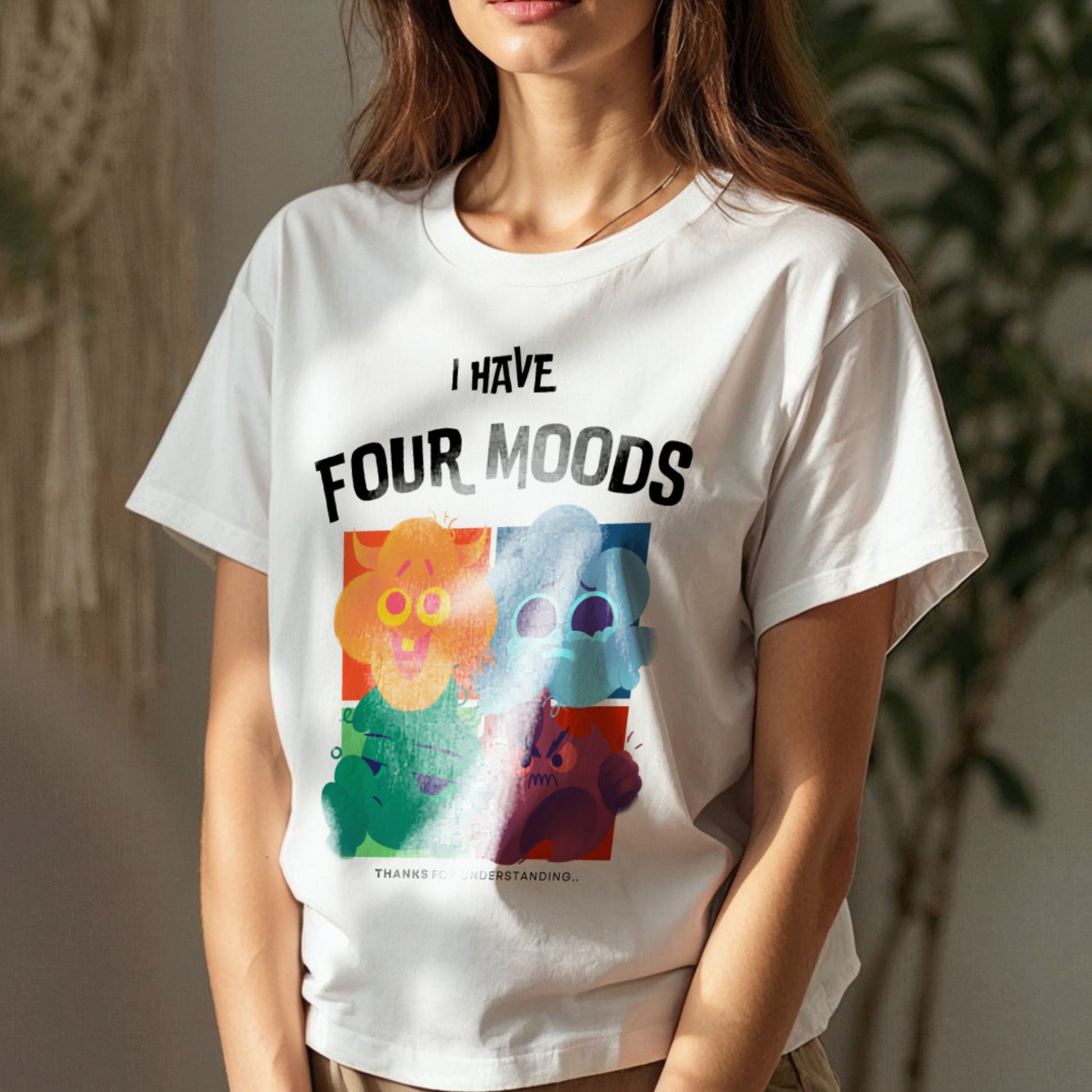 Whether you're normalizing mood fluctuations, appreciating those who understand your complexity, communicating emotional range openly, celebrating mental health awareness, thanking patient friends and family, or simply owning your four distinct moods, this design is your emotional passport. Perfect for mental health advocacy, casual honest expression, friendship appreciation, mood awareness days, or everyday wear for the emotionally complex. Four moods. One person. Thanks for getting it.