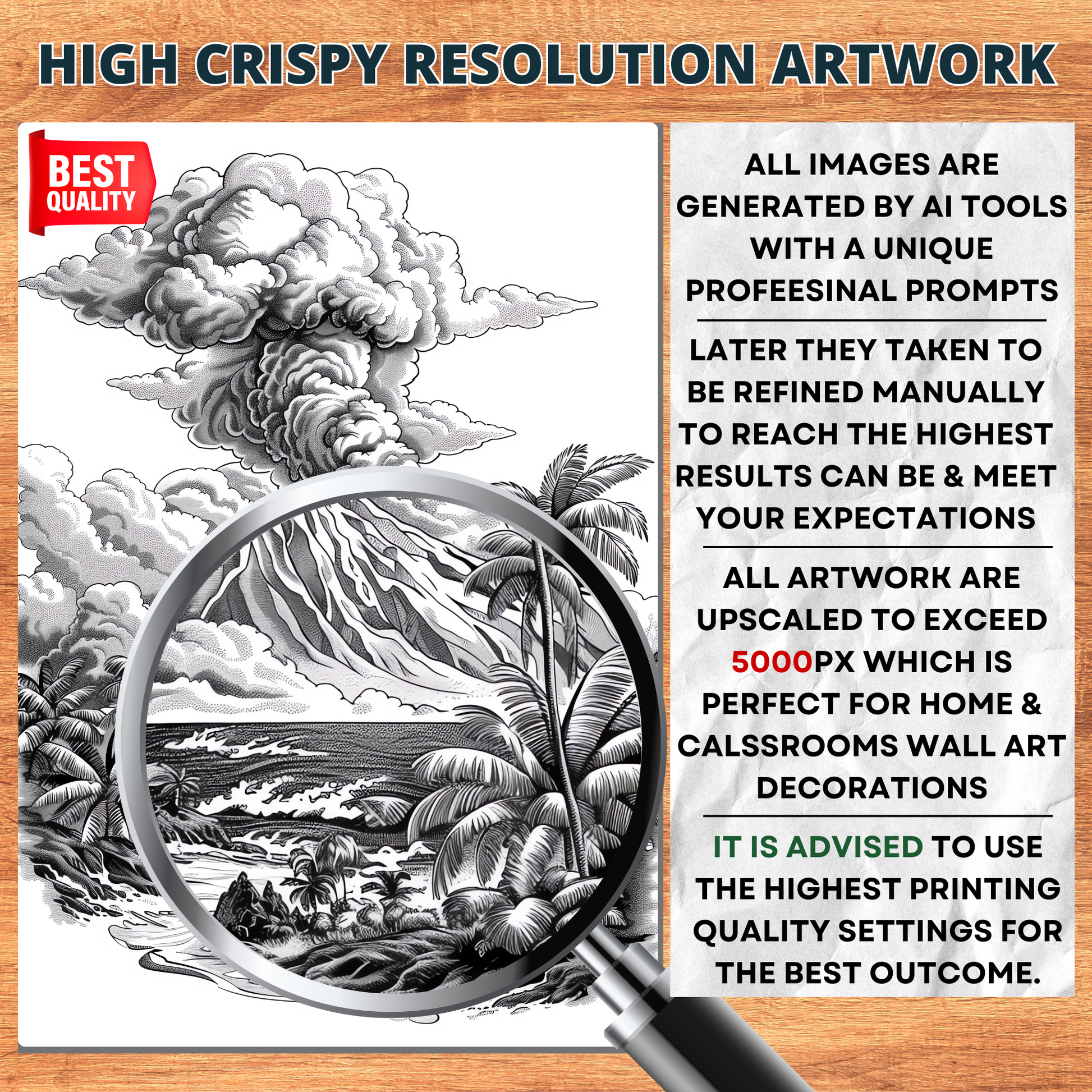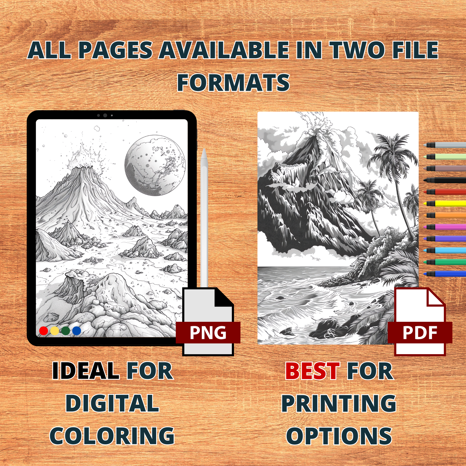 Embark on a captivating exploration of nature's grandeur with "Great Mountains' Volcanoes," an enchanting coloring book pages collection available as a digital download. Immerse yourself in a realm of towering peaks, fiery eruptions, and diverse landscapes, each page offering a unique and intricate design. Perfect for both adults and kids, this printable collection invites you to breathe life into these awe-inspiring natural wonders.