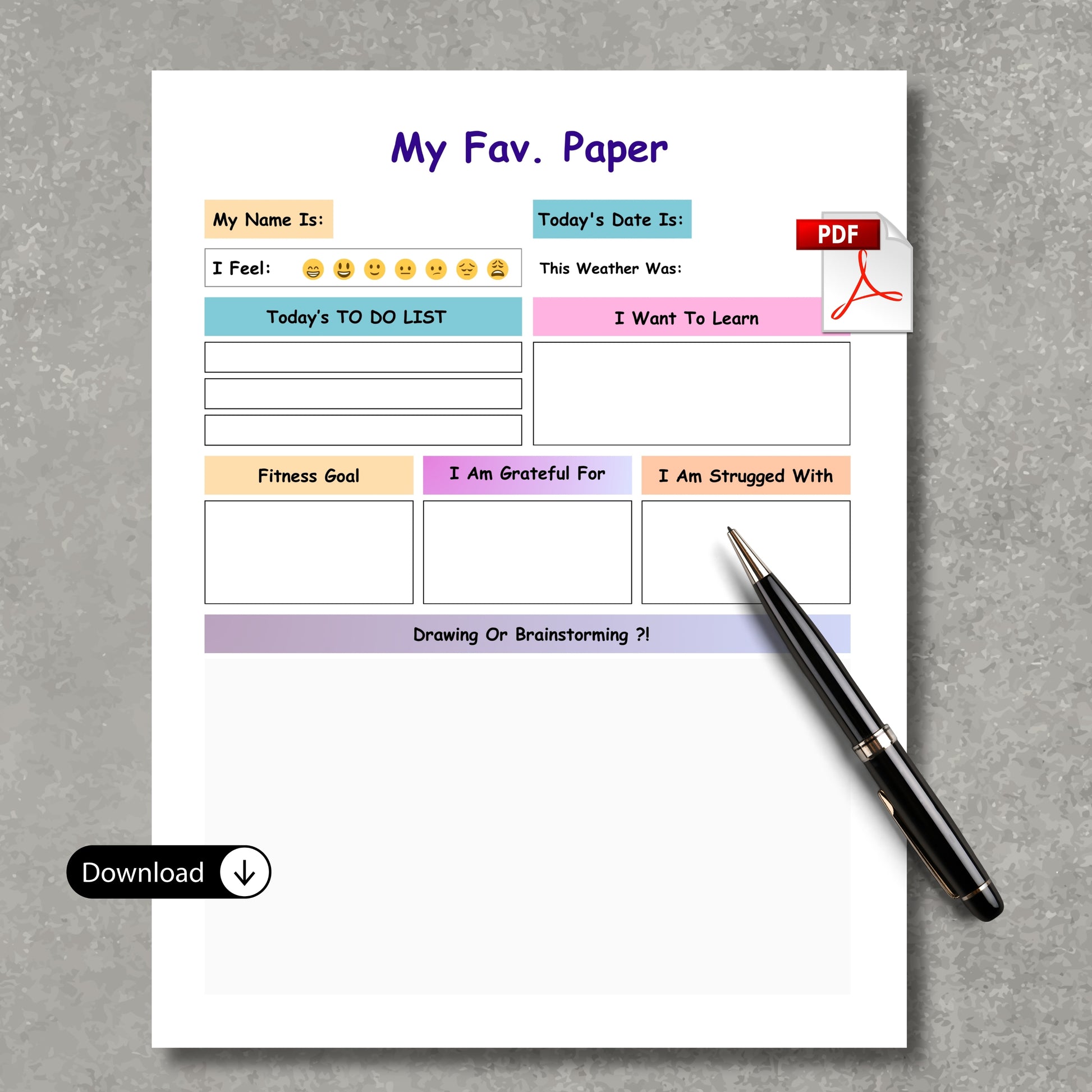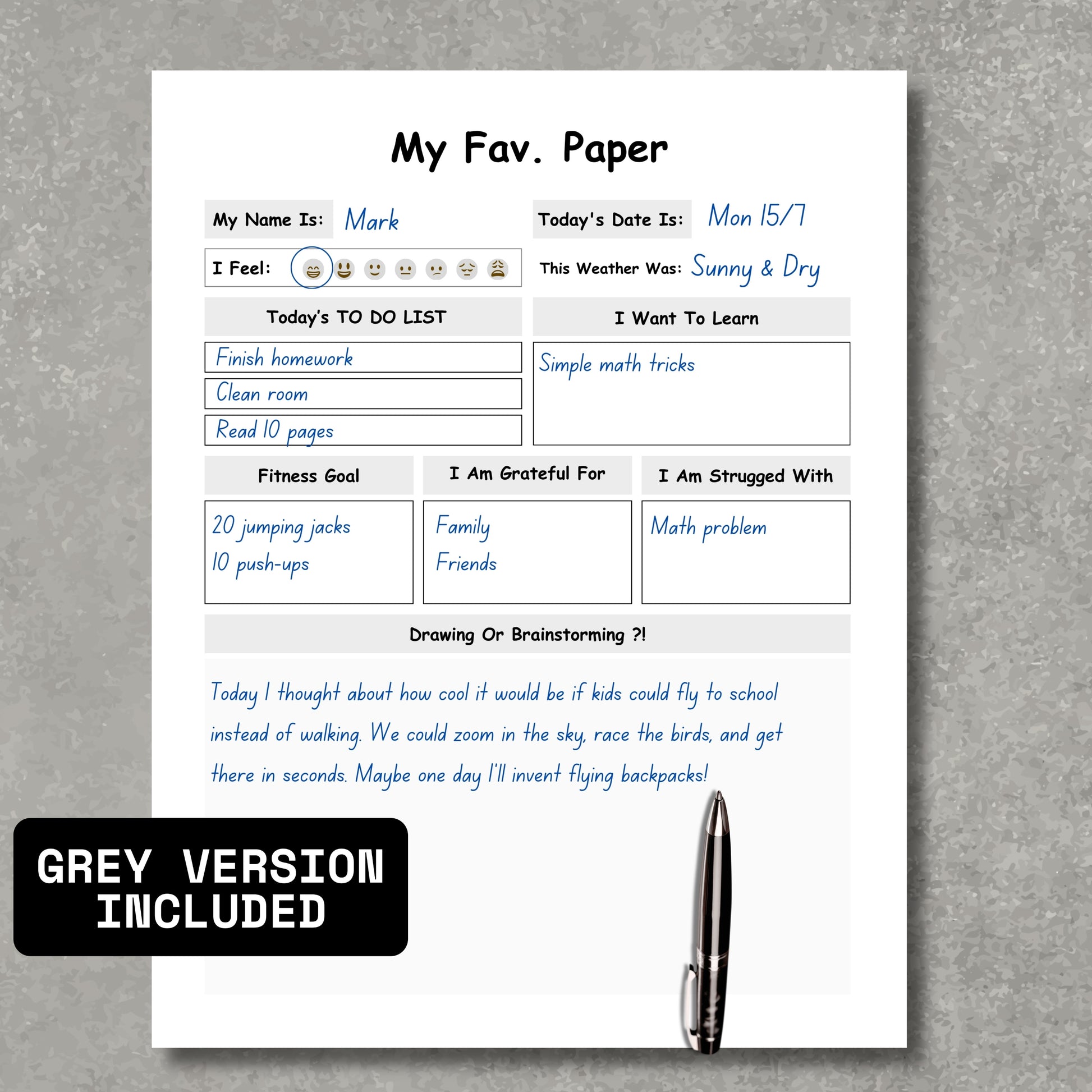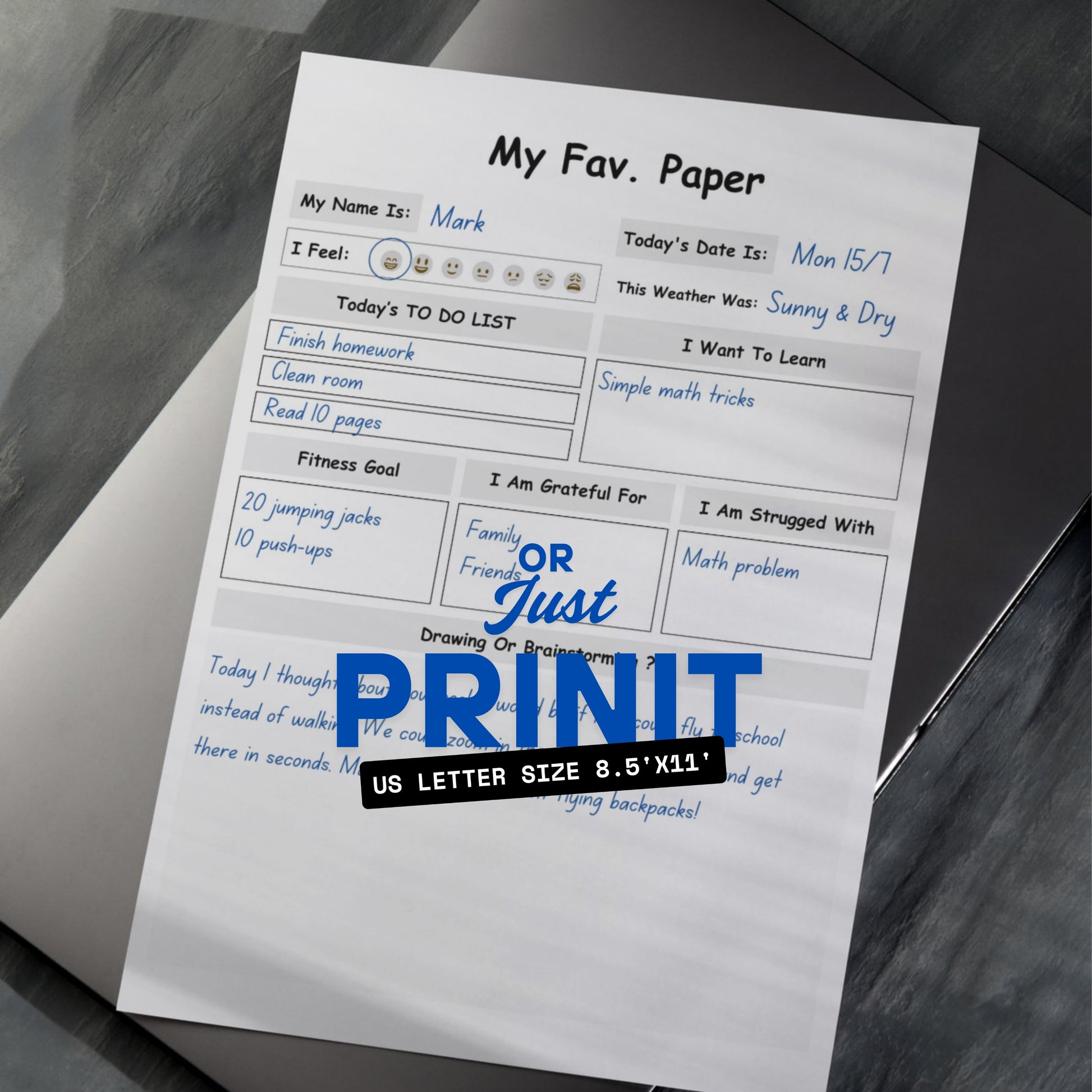 • For digital use: Open on a tablet or iPad and let kids fill in their daily entries directly using their preferred PDF annotation app.
