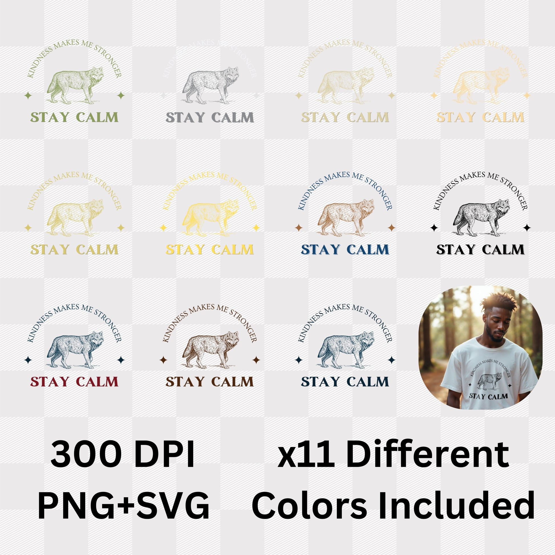 Kindness Makes Me Stronger Stay Calm - Wolf Motivational Statement Artwork