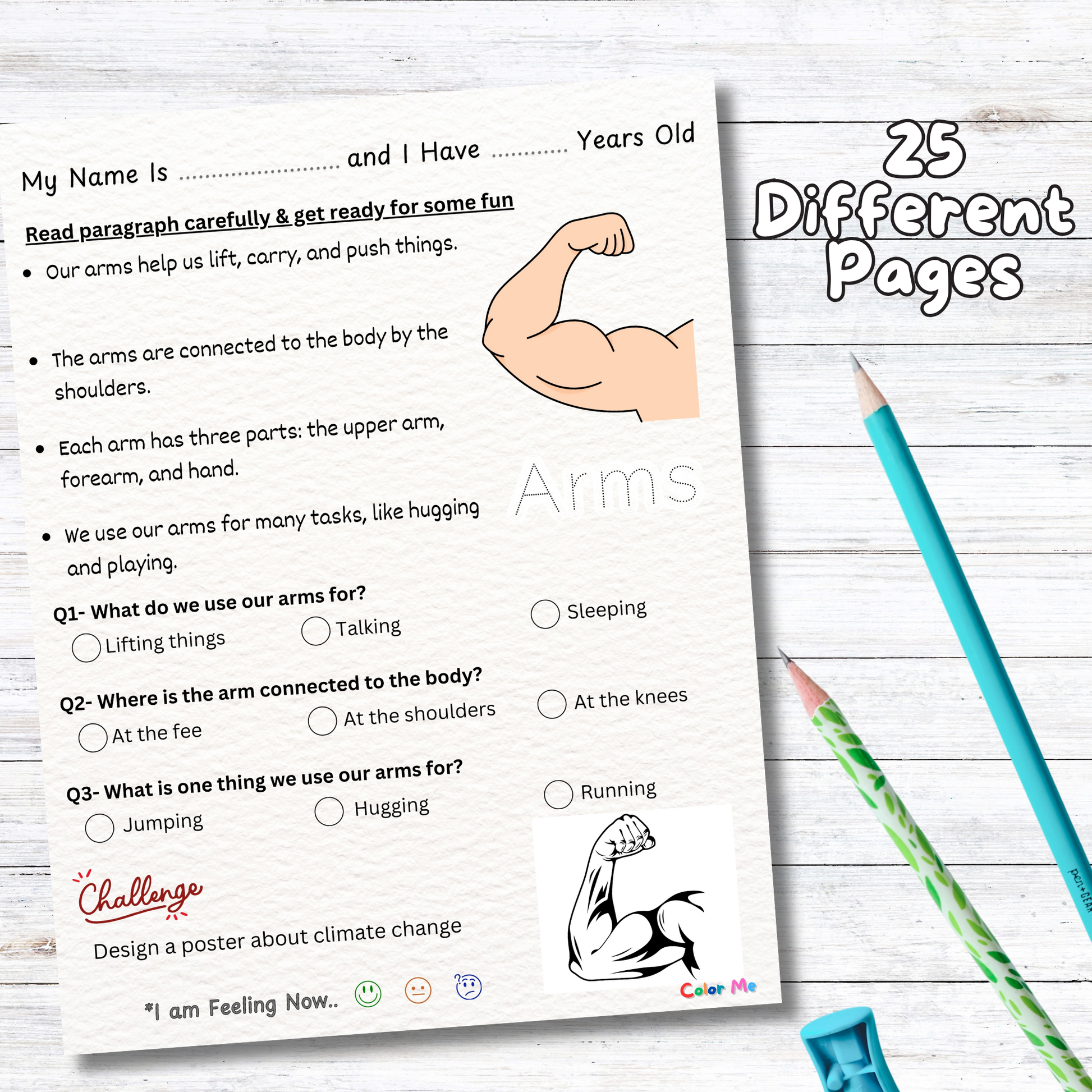 Hey there, health-minded educators and body-positive parents! Ready to help your little ones discover the amazing machine they live in? This workbook is your anatomy atlas for teaching about muscles, arms, eyes, teeth, heart, lungs, and every incredible body part that makes us move, think, and grow - all while building essential reading skills. Perfect for the kiddos who are endlessly curious about how their bodies work, and ideal for when you need educational content that builds body awareness and self-care. Warning: May cause fascination with anatomy, requests to feel their own heartbeat, and surprisingly detailed explanations of digestion at dinner time!