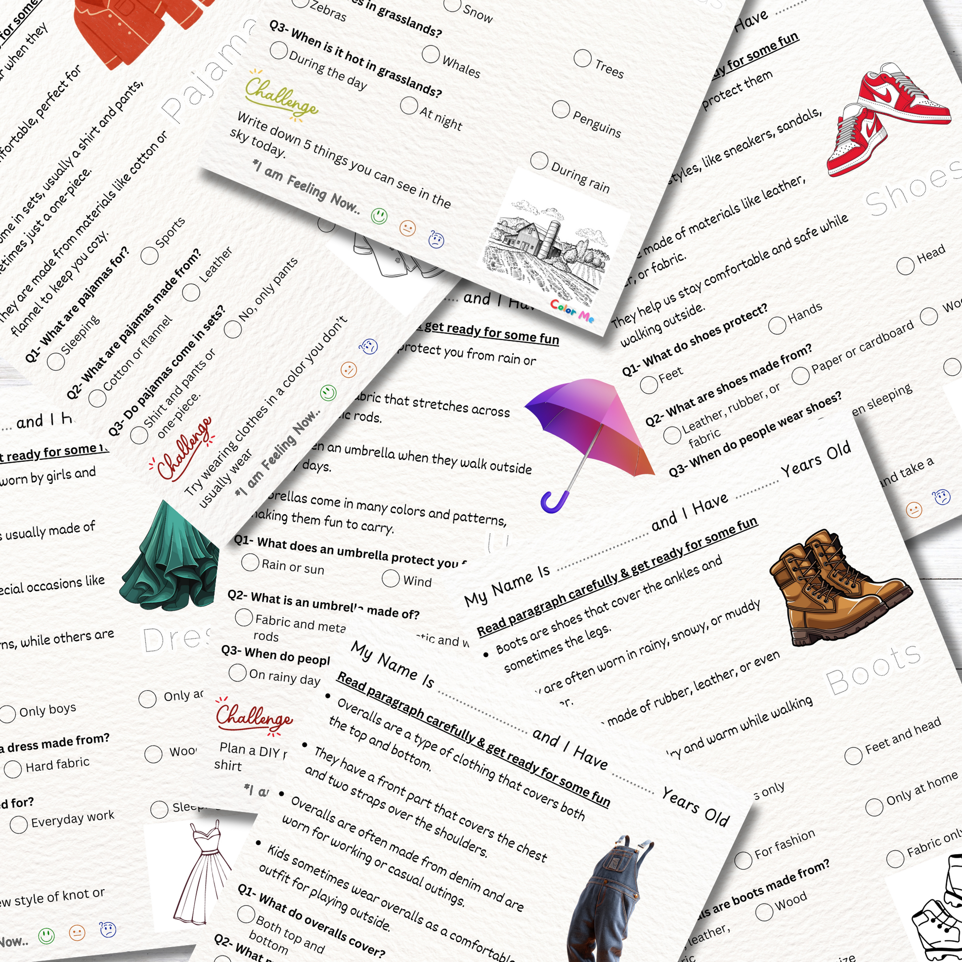 Hey there, style-conscious educators and getting-dressed-battle-weary parents! Ready to transform morning outfit struggles into learning opportunities? This workbook is your wardrobe guide for exploring hoodies, raincoats, shoes, hats, dresses, pants, and every piece of clothing that keeps us comfortable and confident - all while building essential reading skills. Perfect for the kiddos who love picking out their own outfits (or refuse to wear anything but their favorite shirt), and ideal for when you need educational content that connects to daily life. Warning: May cause increased fashion awareness, requests to organize their closet, and surprisingly strong opinions about matching!