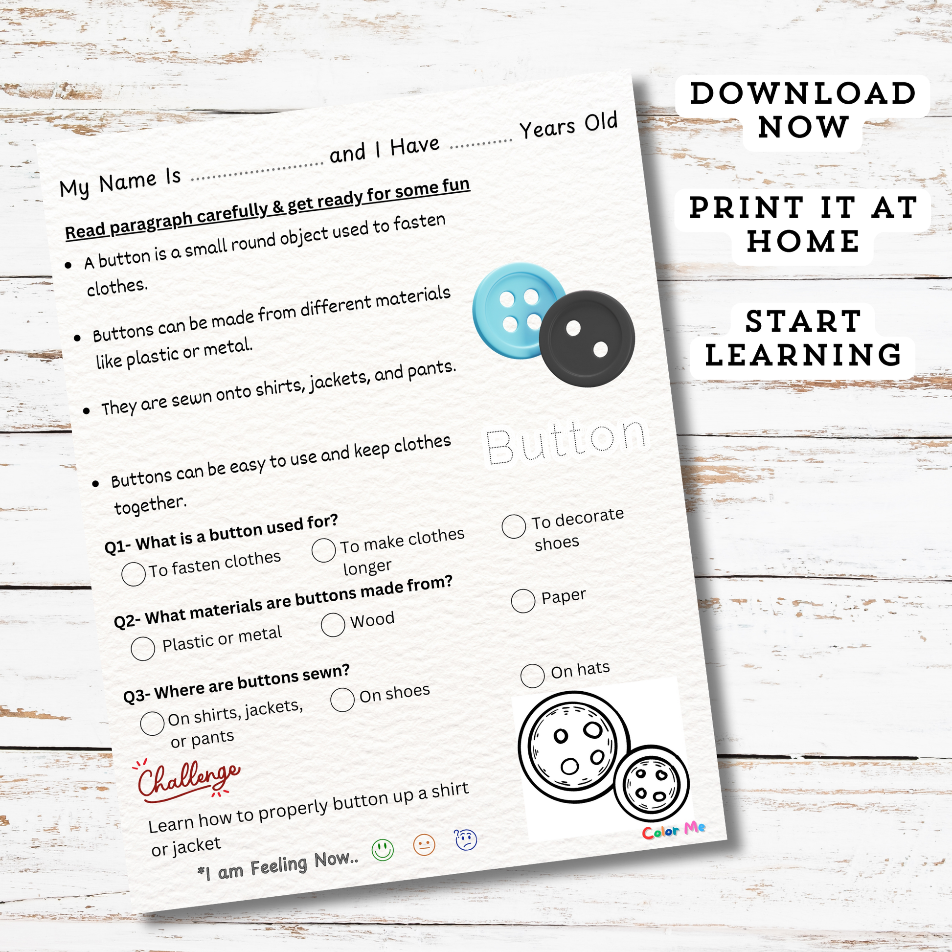 - Personal name and age fill-in section