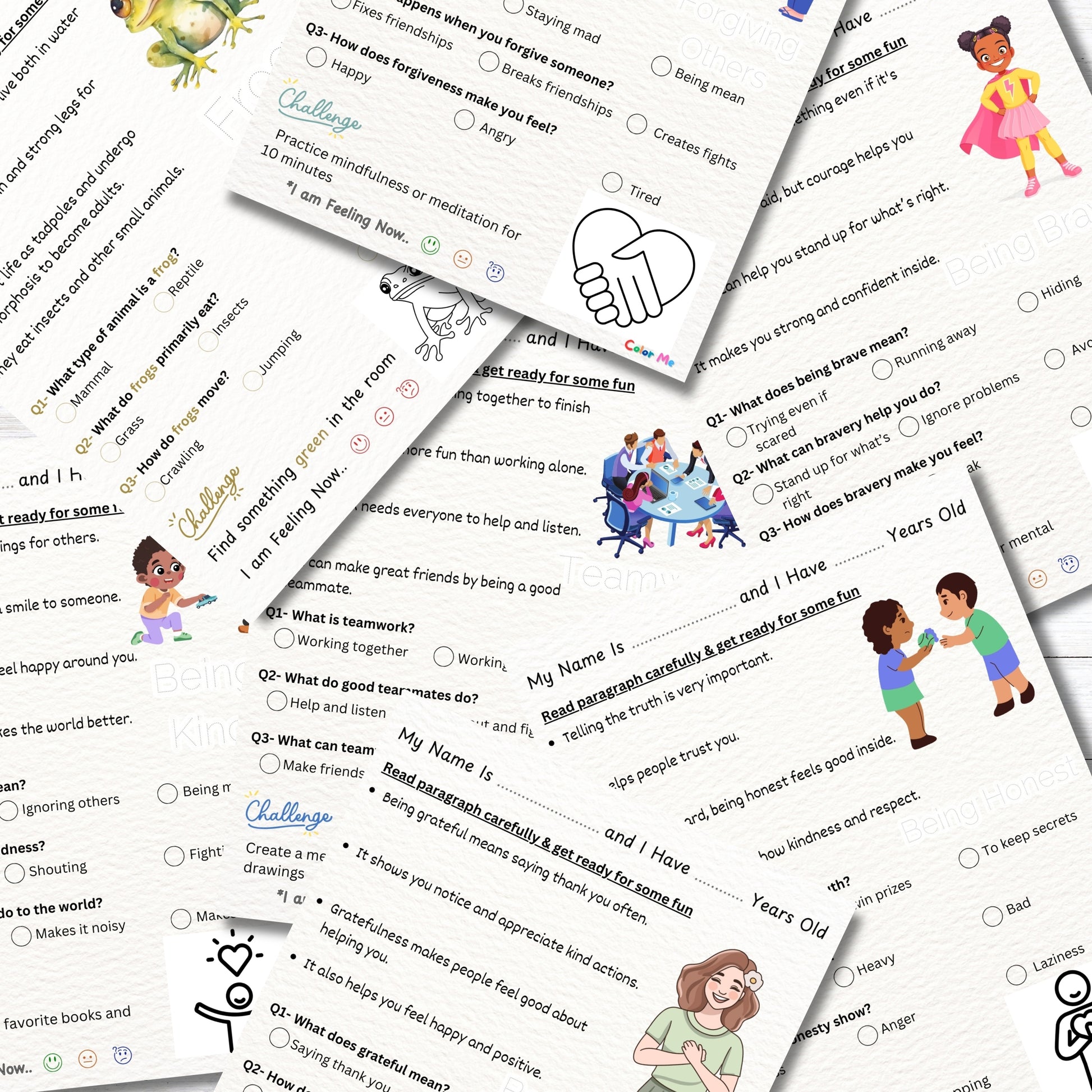 Hey there, values-driven educators and character-building parents! Ready to raise kind, honest, brave, and compassionate little humans? This workbook is your guide for teaching forgiveness, fair play, honesty, courage, teamwork, gratitude, respect, and all the essential ethical values that create wonderful people - all while building reading skills. Perfect for the kiddos learning to navigate friendships and emotions, and ideal for when you need educational content that builds both hearts and minds. Warning: May cause increased kindness, better conflict resolution, and spontaneous acts of compassion toward others!