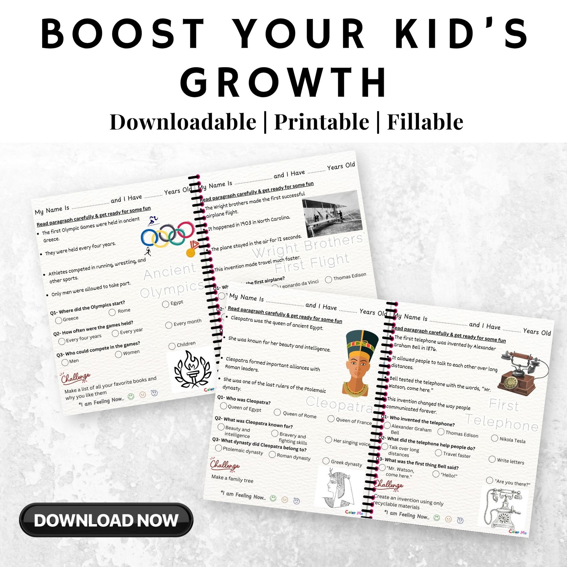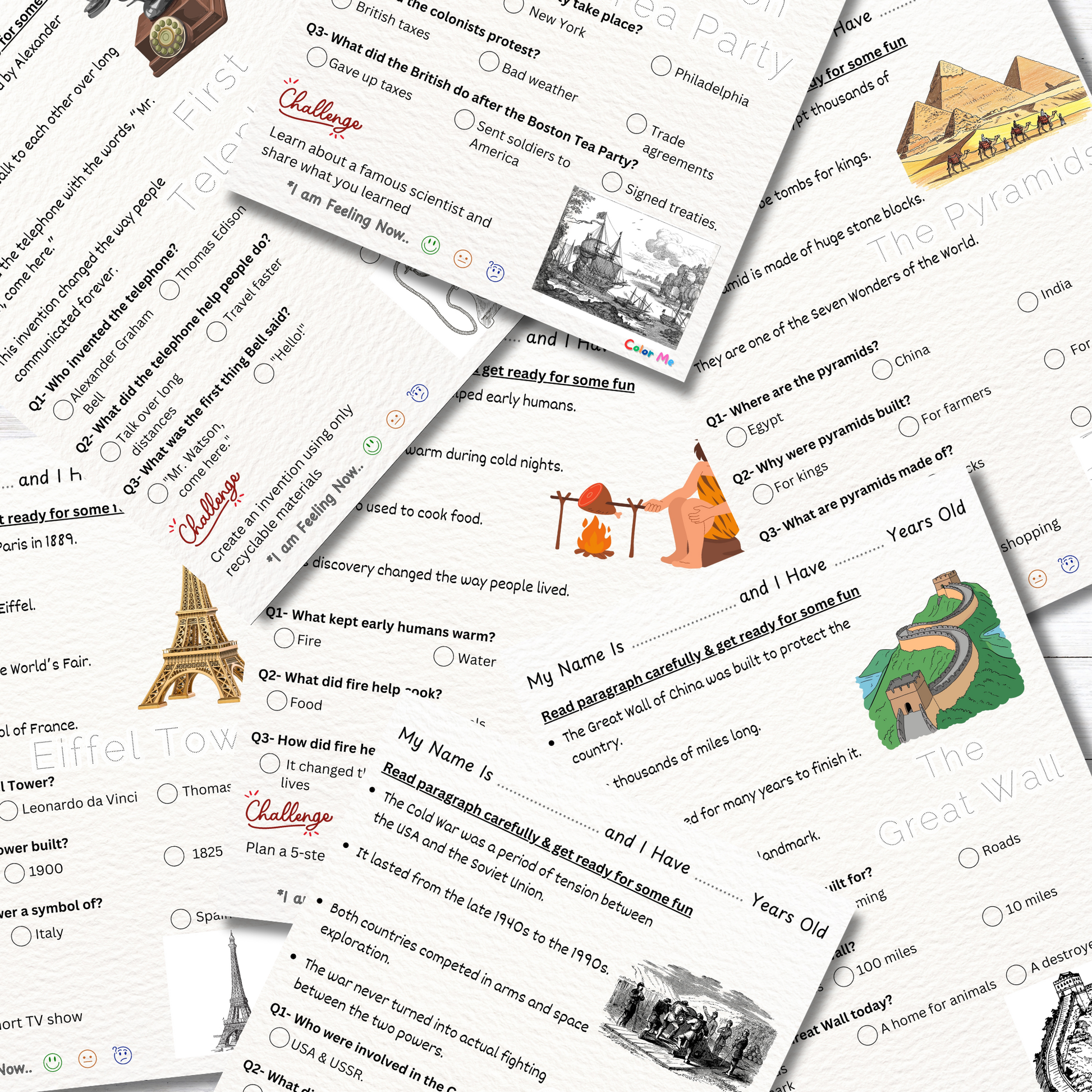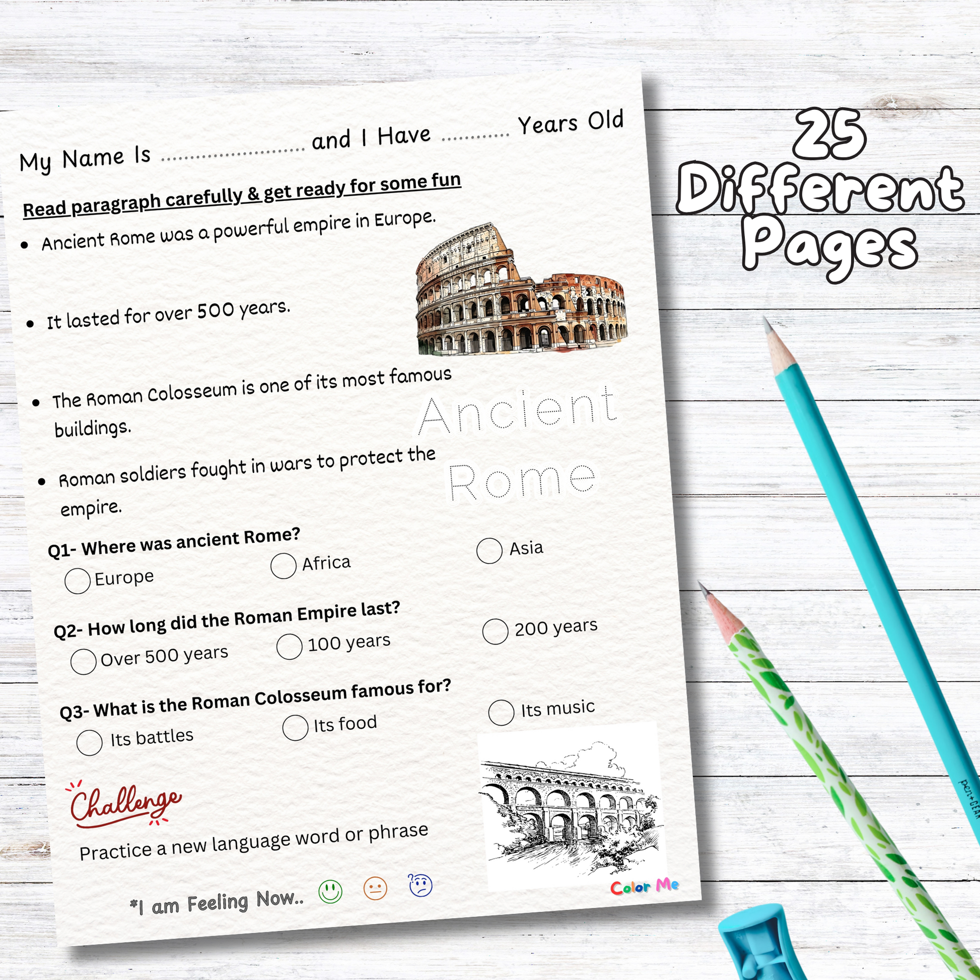 Hey there, time-traveling educators and history-loving parents! Ready to take your little explorer on an epic journey through time? This workbook is your time machine for discovering ancient civilizations, important inventions, famous leaders, and all the incredible stories that shaped our world - all while building essential reading skills. Perfect for the kiddos who love asking "how did people live back then?" and ideal for when you need educational content that makes the past come alive. Warning: May cause intense curiosity about ancestors, sudden fascination with museums, and requests to dress up like historical figures!