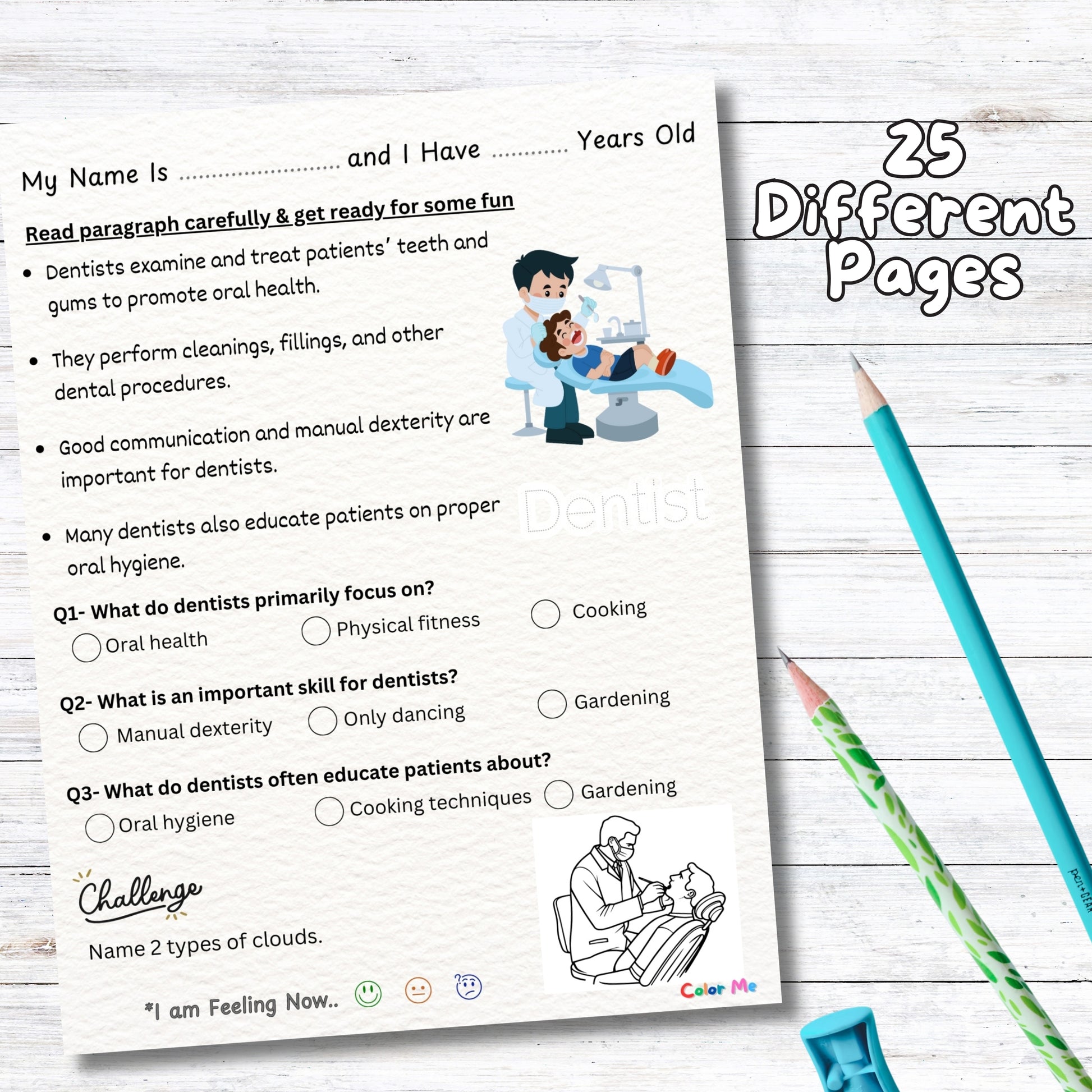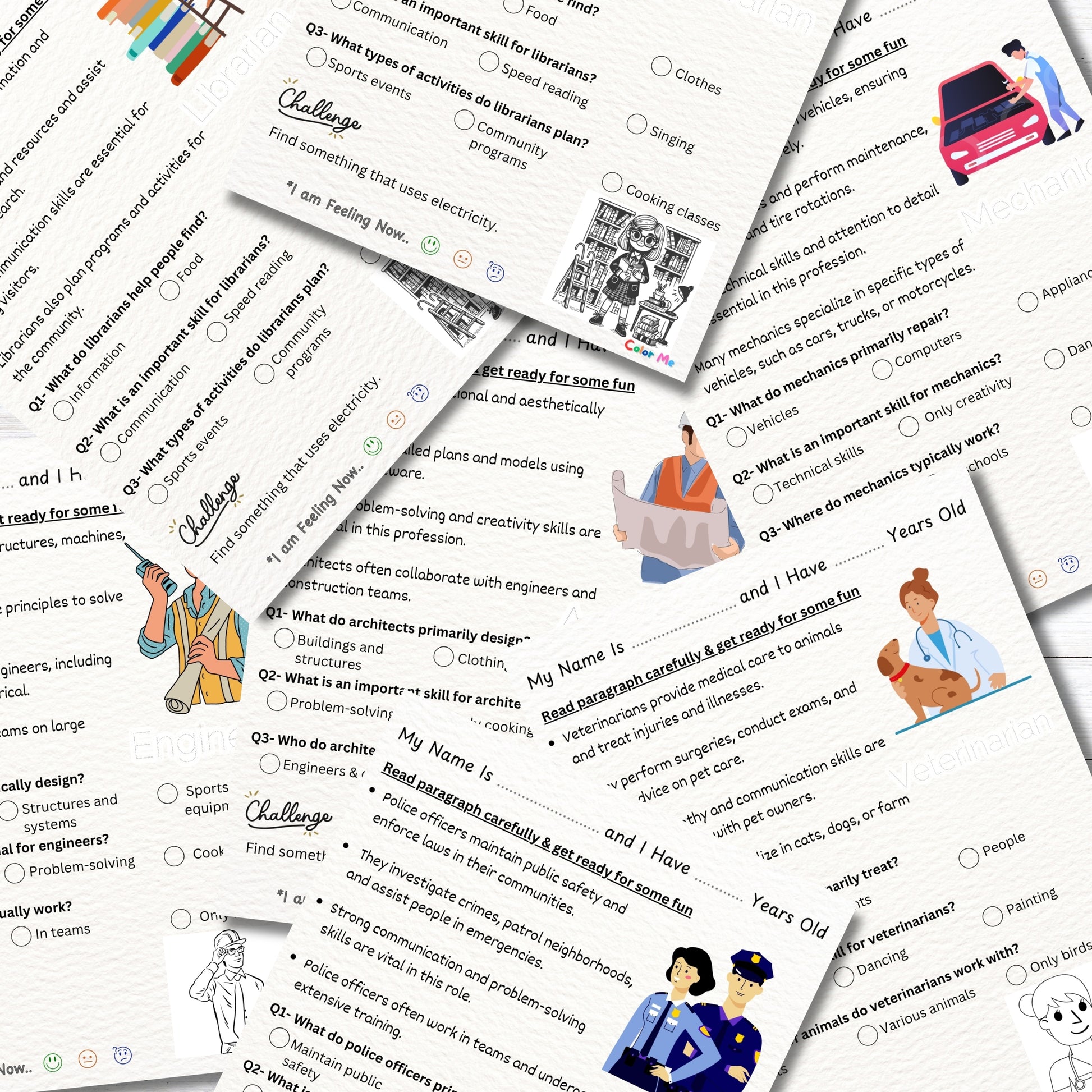 Hey there, career-exploring educators and dream-building parents! Ready to open your child's eyes to the amazing world of careers and possibilities? This workbook is your career counselor for exploring doctors, dentists, teachers, firefighters, chefs, artists, engineers, and every job that makes our world work - all while building essential reading skills. Perfect for the kiddos who love asking "what do you do?" and dream about their future, and ideal for when you need educational content that expands horizons and inspires ambition. Warning: May cause career day enthusiasm, requests to visit workplaces, and daily changes in "what I want to be when I grow up!"