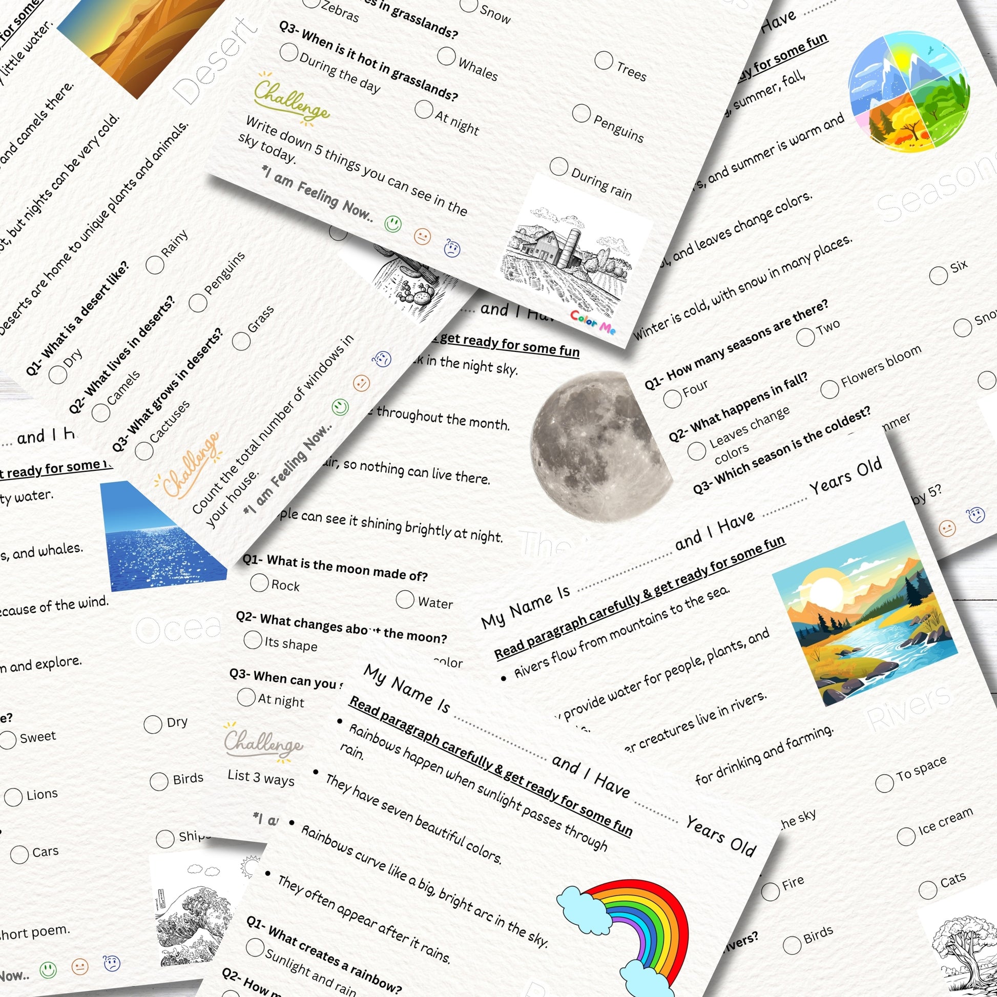 Hey there, outdoor-loving educators and nature-adventuring parents! Ready to help your little explorer discover the wonders right outside the door? This workbook is your field guide for exploring the sun, trees, flowers, mountains, rivers, weather, seasons, volcanoes, and all the incredible natural phenomena that make our planet amazing - all while building essential reading skills. Perfect for the kiddos who'd rather be climbing trees than sitting still, and ideal for when you need educational content that celebrates the great outdoors. Warning: May cause increased outdoor time, constant nature observations, and requests to go on "just one more nature walk!"