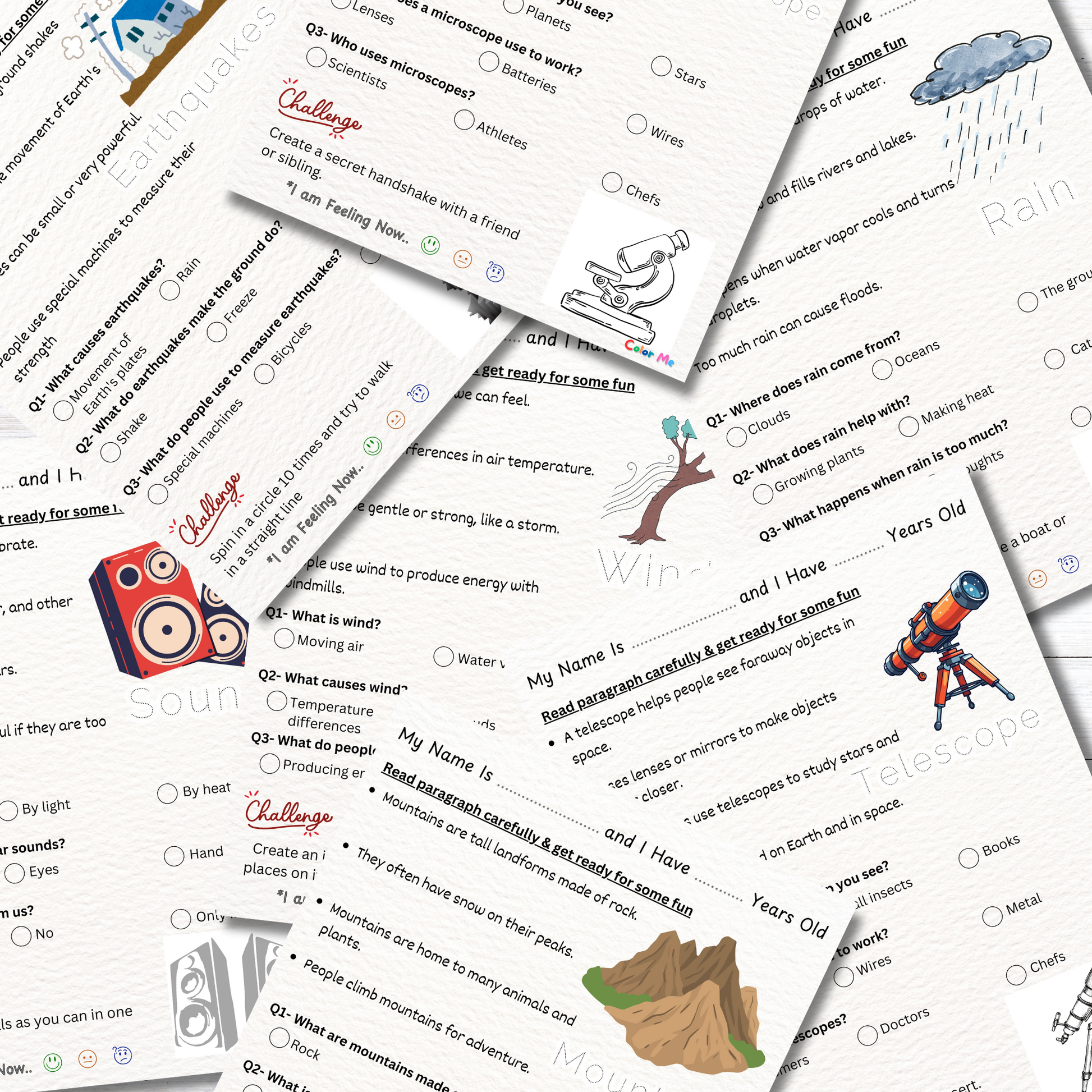 - Creative Challenges: Fun activities like acting out scenes, puppet shows, and hands-on observations