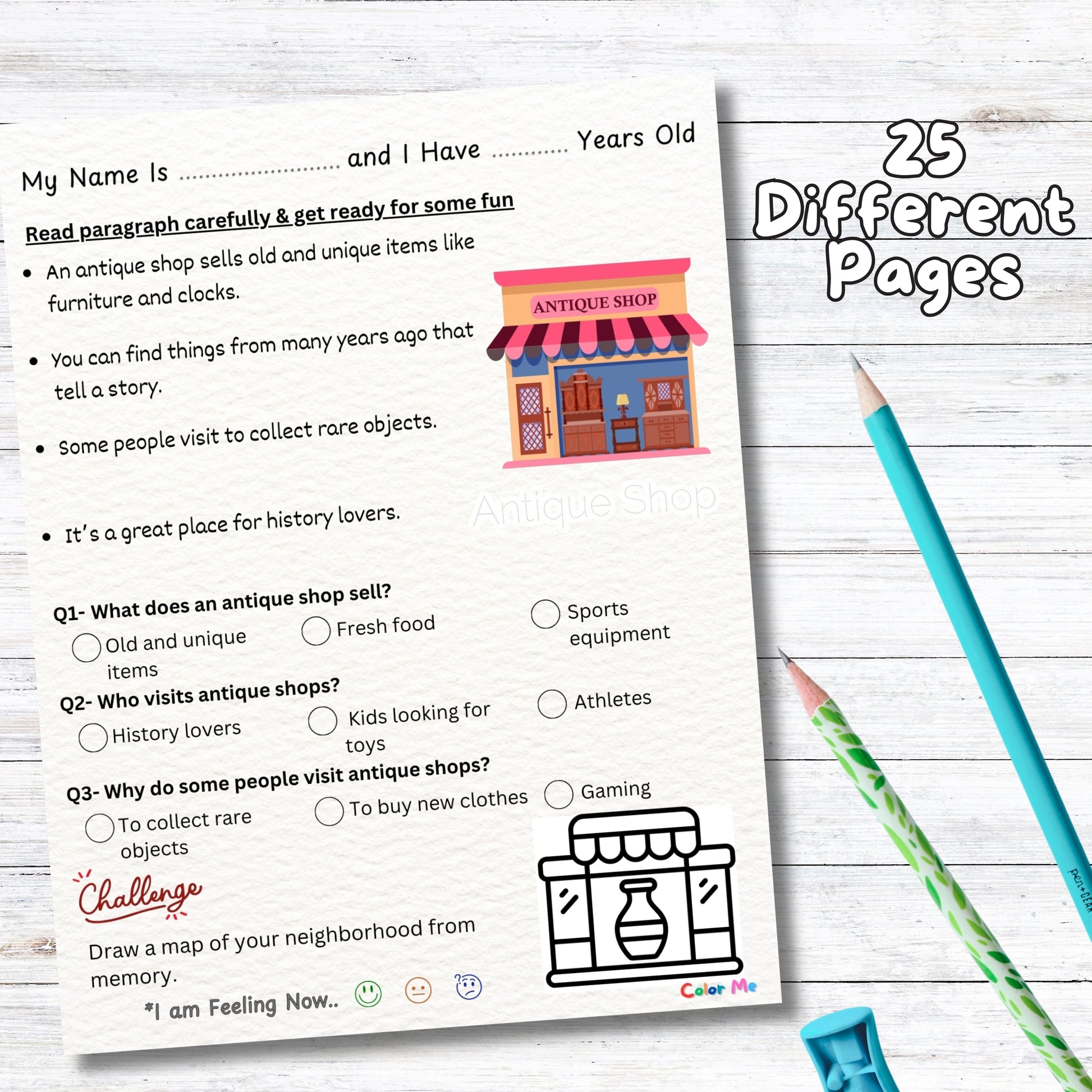 Hey there, community-minded educators and neighborhood-exploring parents! Ready to turn every shopping trip into a learning adventure? This workbook is your passport to discovering all the amazing shops and stores in our communities while building essential reading skills. Perfect for the kiddos who love tagging along on errands and asking what every store sells, and ideal for when you need educational content that connects to real-world experiences. Warning: May cause increased observation skills during shopping trips and requests to visit "just one more store" to learn about it!