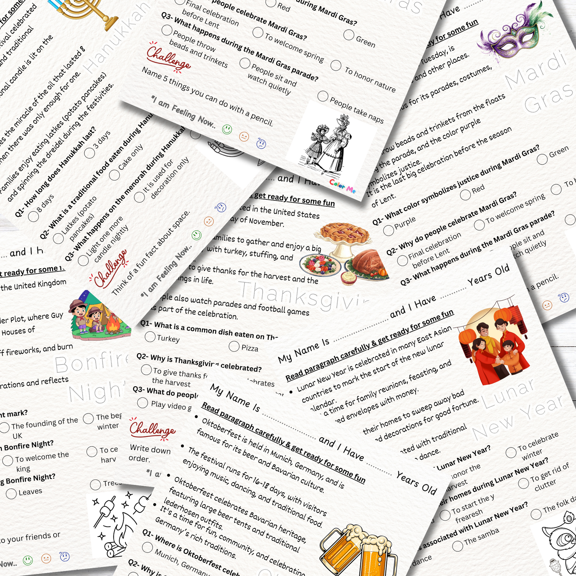 Hey there, culturally-curious educators and celebration-loving parents! Ready to take your little ones on a colorful journey through the world's most amazing festivals and traditions? This workbook is your ticket to exploring how people celebrate around the globe while building essential reading skills. Perfect for the kiddos who love parties, decorations, and asking "why do people do that?" - and ideal for when you need educational content that celebrates diversity and inclusion. Warning: May cause spontaneous requests to celebrate every festival from every culture!