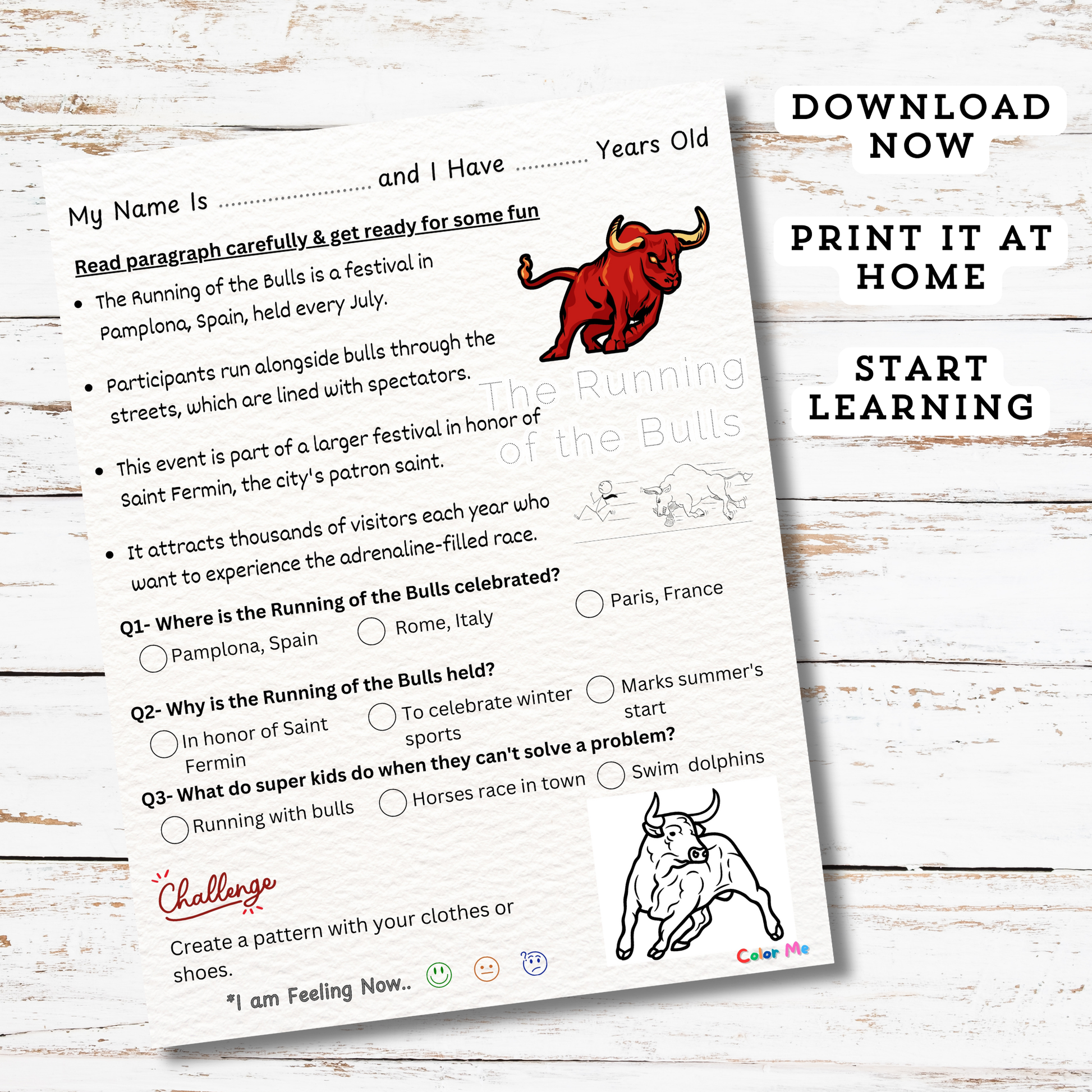 - Personal name and age fill-in section