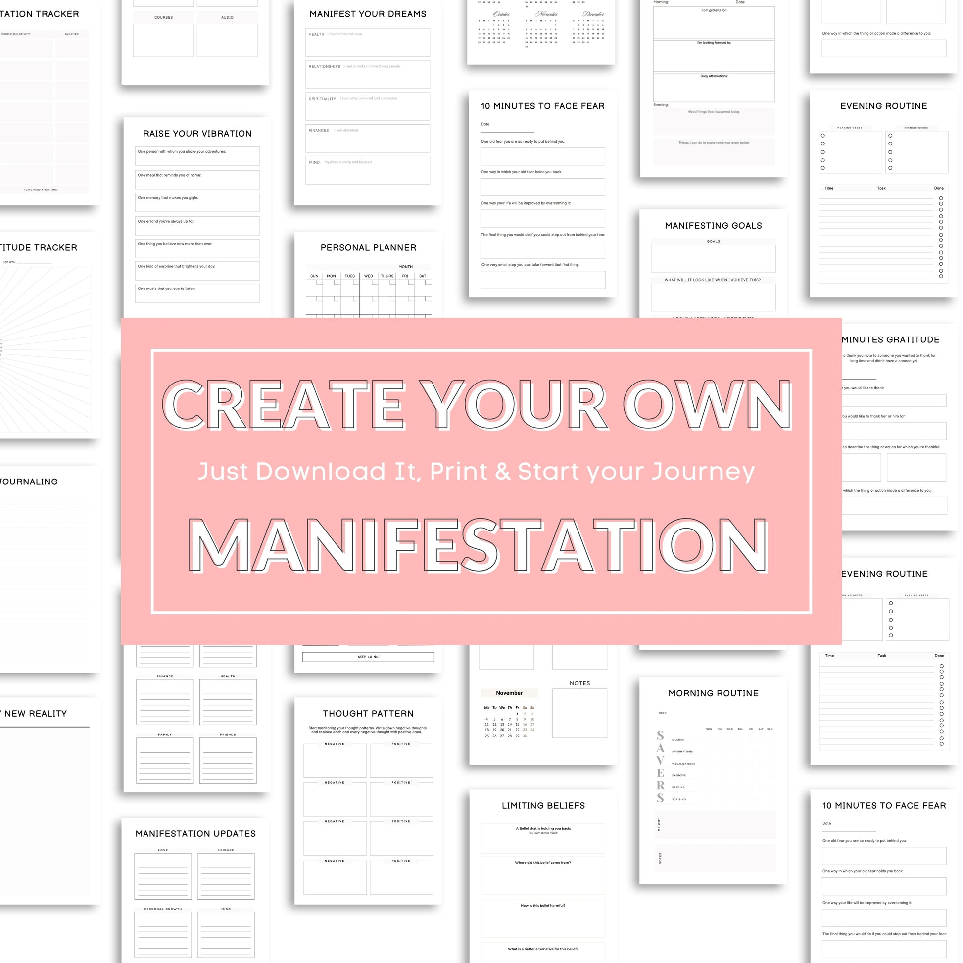 • 1 x Manifestation Planner Bundle (61 pages, A4 size 21cm x 29.7cm)