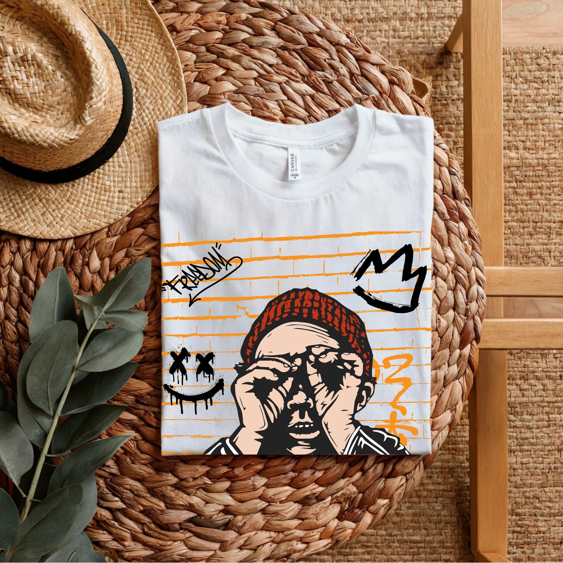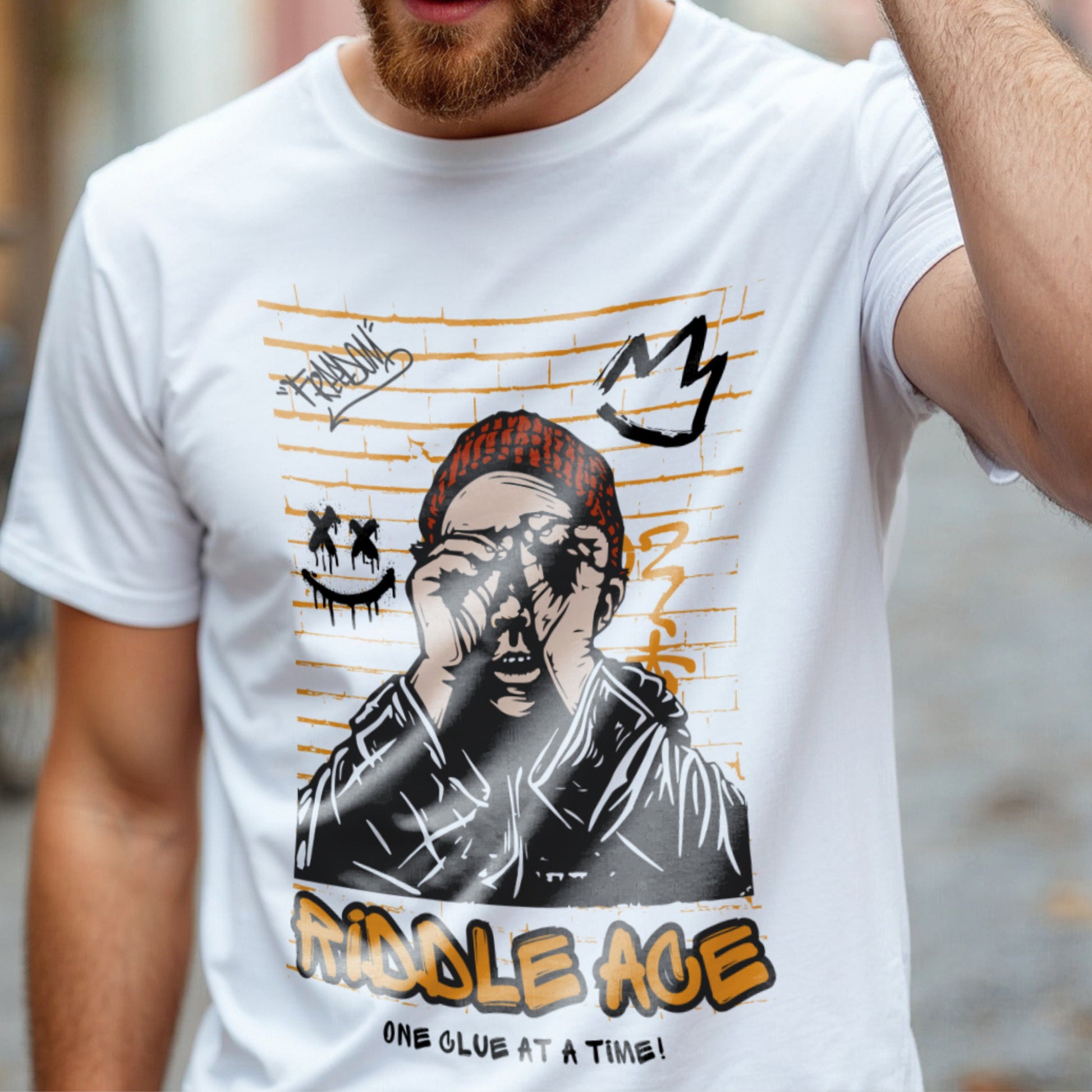Navigating life's mysteries one clue at a time. This bold urban street art design features striking graffiti-style illustration with brick wall textures and crown elements, celebrating the journey through middle age where experience meets uncertainty. It's for those who understand that figuring out life is an ongoing investigation with no instruction manual.