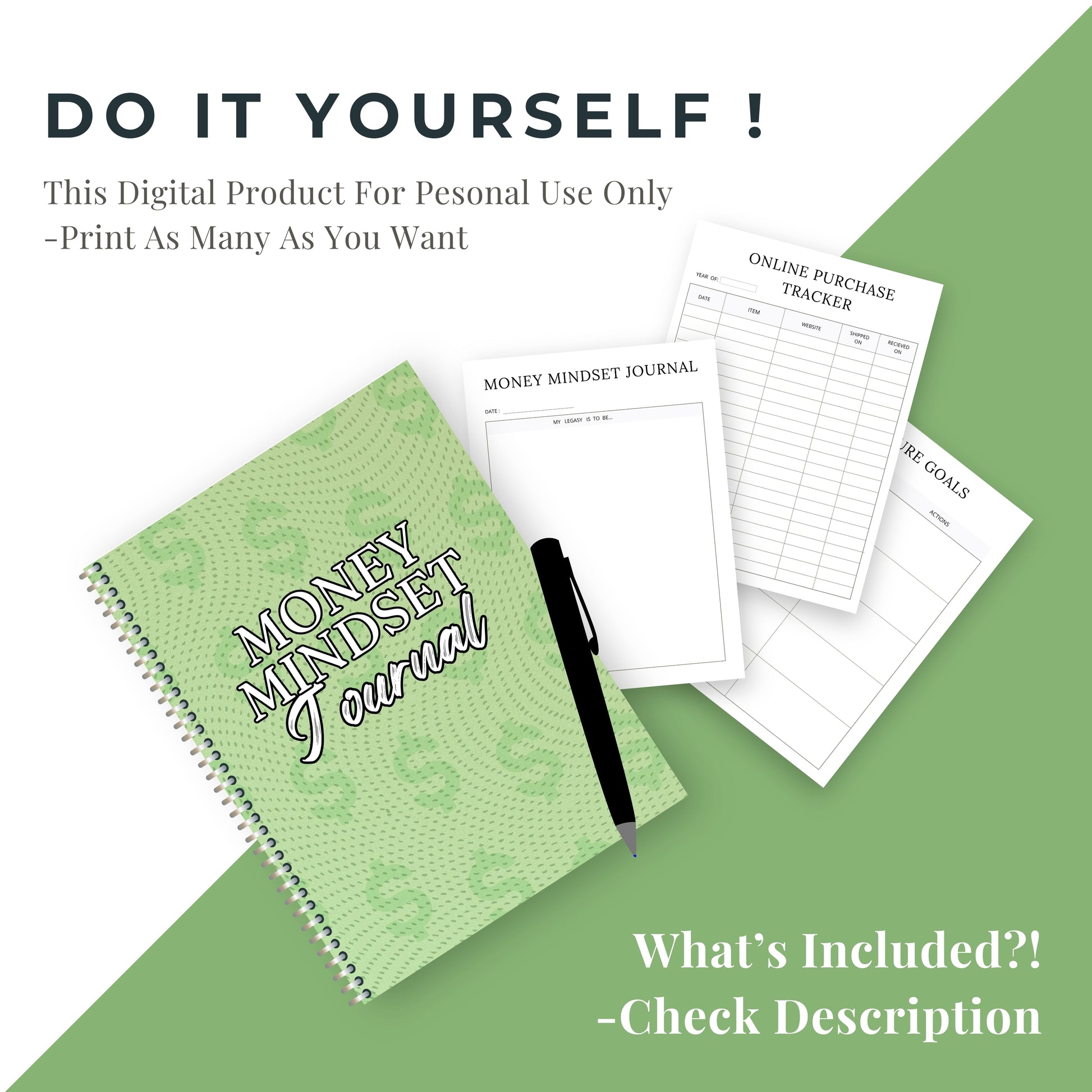 • 1 x Money Mindset Journal Bundle (52 pages, A4 paper size 8.27" x 11.69")
