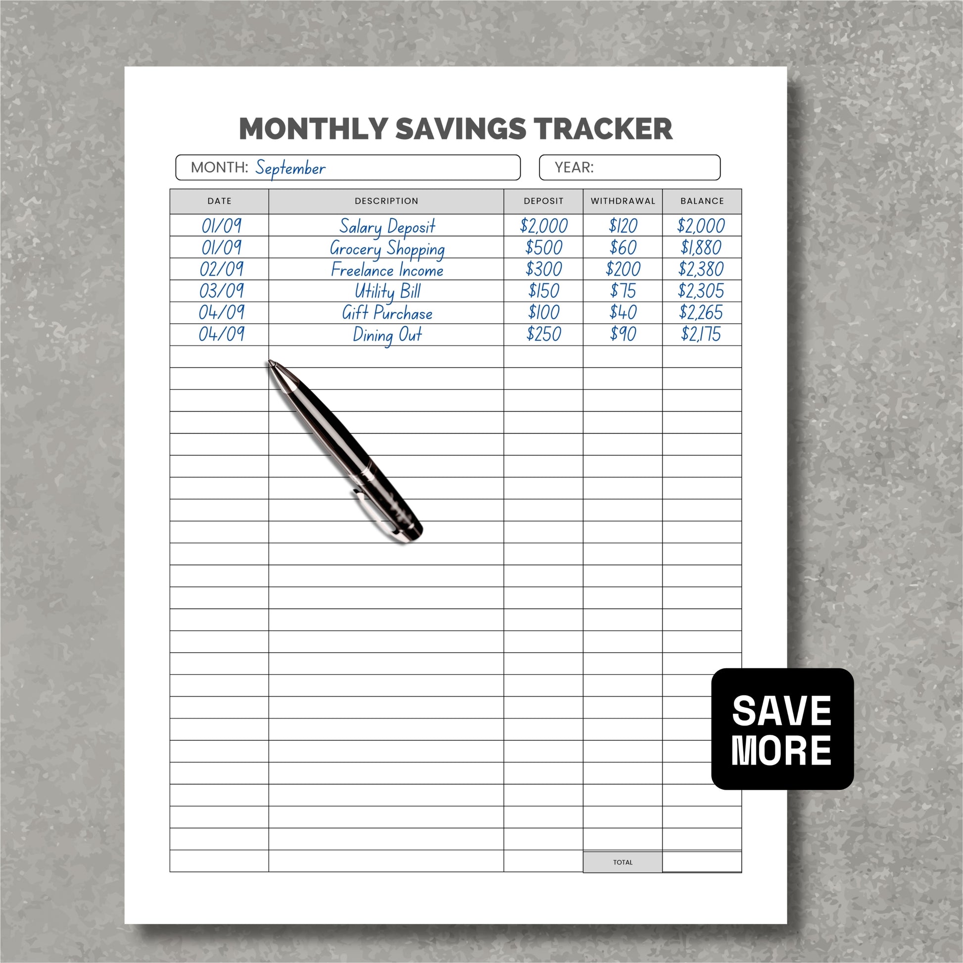 • 1 x Monthly Saving Tracker PDF (US Letter 8.5" x 11")