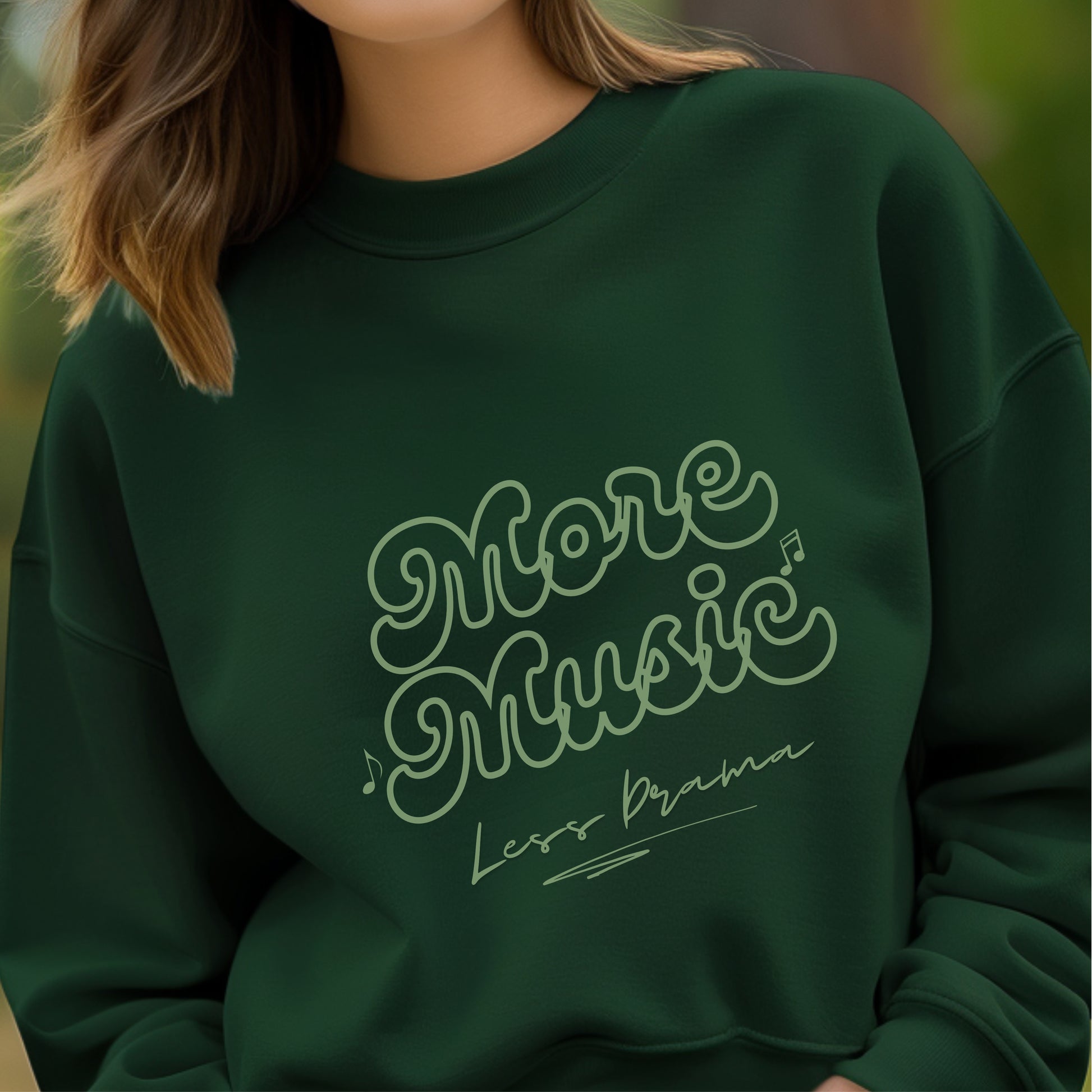 Whether you're actively choosing music over drama, turning up your headphones instead of engaging with chaos, appreciating retro bubble script aesthetics, believing that good music solves most problems, or simply living by the philosophy that life needs more music and less drama, this design states your priorities clearly. Perfect for casual wear, music listening sessions, drama-dodging moments, or any day when you're choosing melody over madness.
