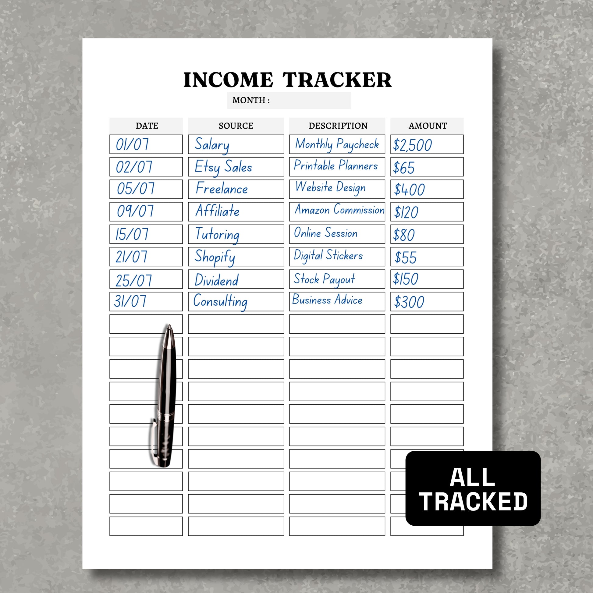 • 1 x PDF Income Tracker (US Letter 8.5" x 11")