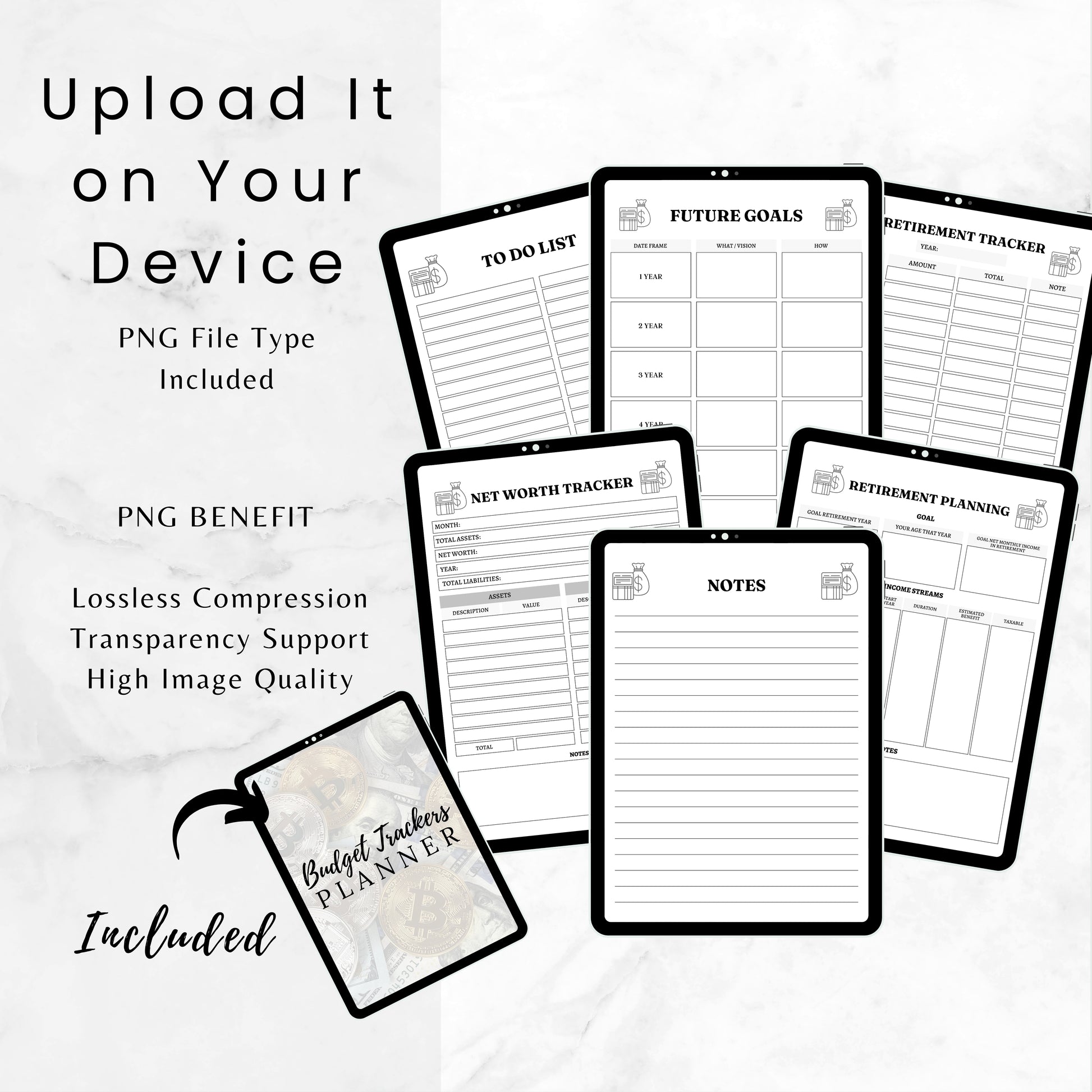This Budget Trackers Planner Bundle helps you move beyond basic budgeting to comprehensive financial management. It provides the tools to track debt reduction, build emergency savings, plan for retirement, and monitor your overall net worth growth over time.