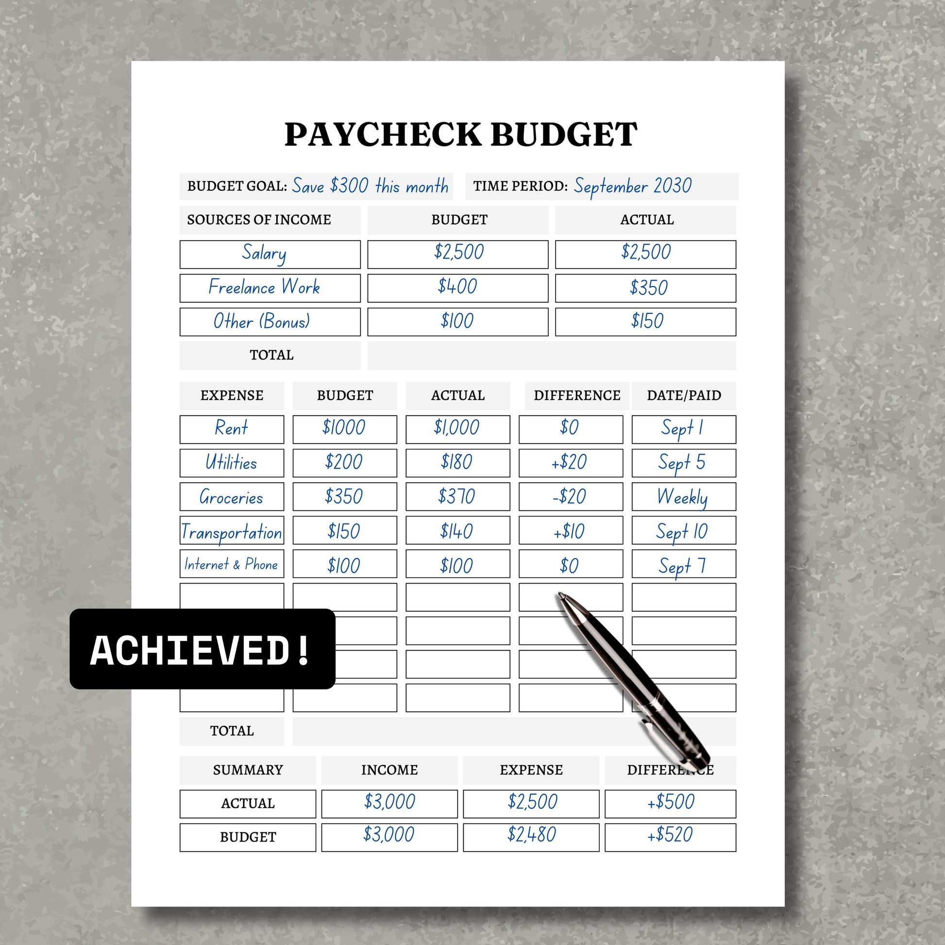 • 1 x PDF Paycheck Budget Planner (US Letter 8.5" x 11")