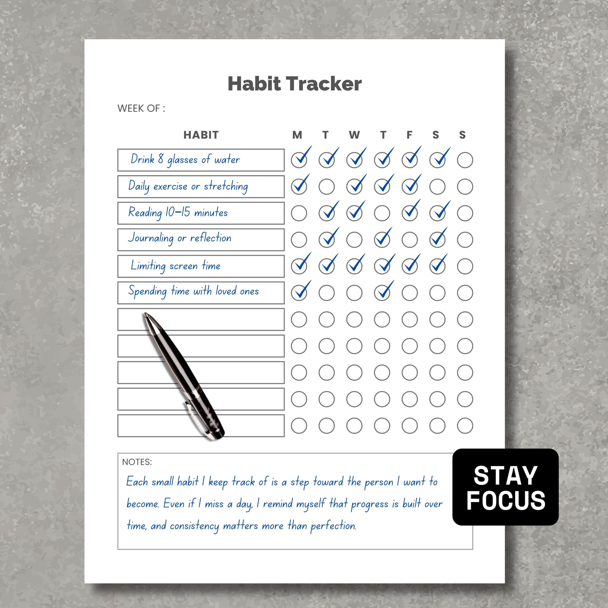 The Habit Tracker helps maintain accountability, build consistency, and achieve personal goals.