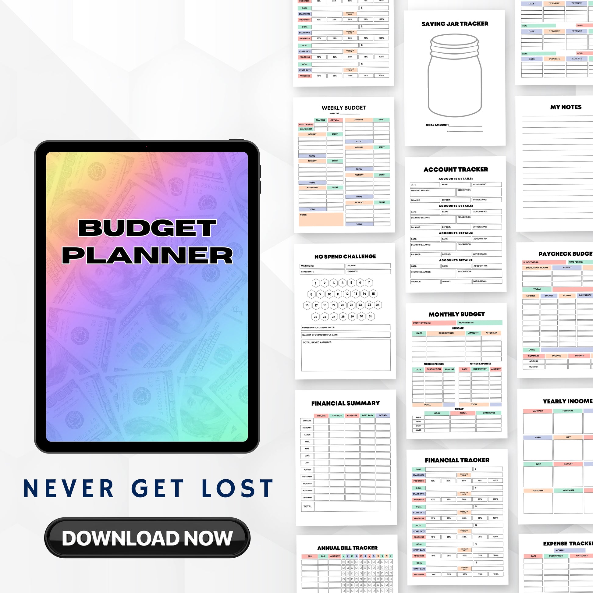• Print Use: Print specific sections or entire planner for a colorful physical budget binder.