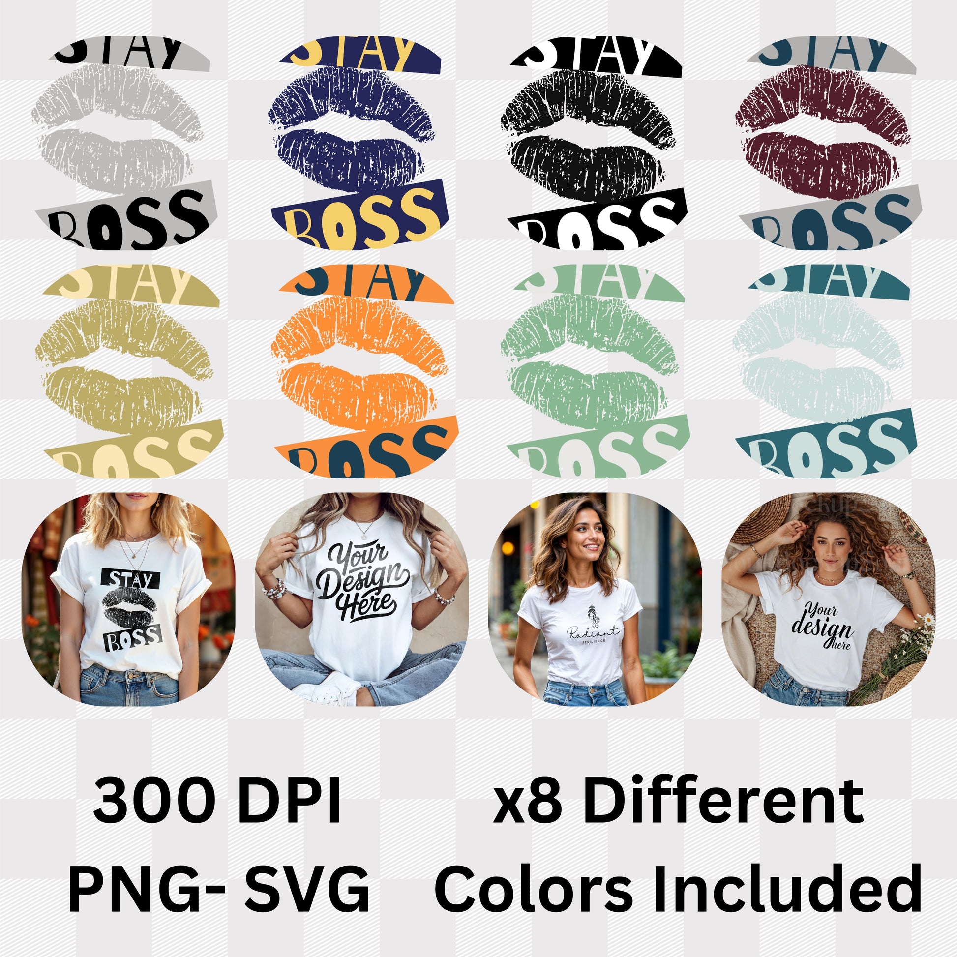 Authority maintained, confidence permanent. This striking graphic features a bold gray lips print sandwiched between "STAY" above and "BOSS" below in strong typography with gray banner blocks. It's for permanent bosses, authority owners, and anyone whose default mode is boss.