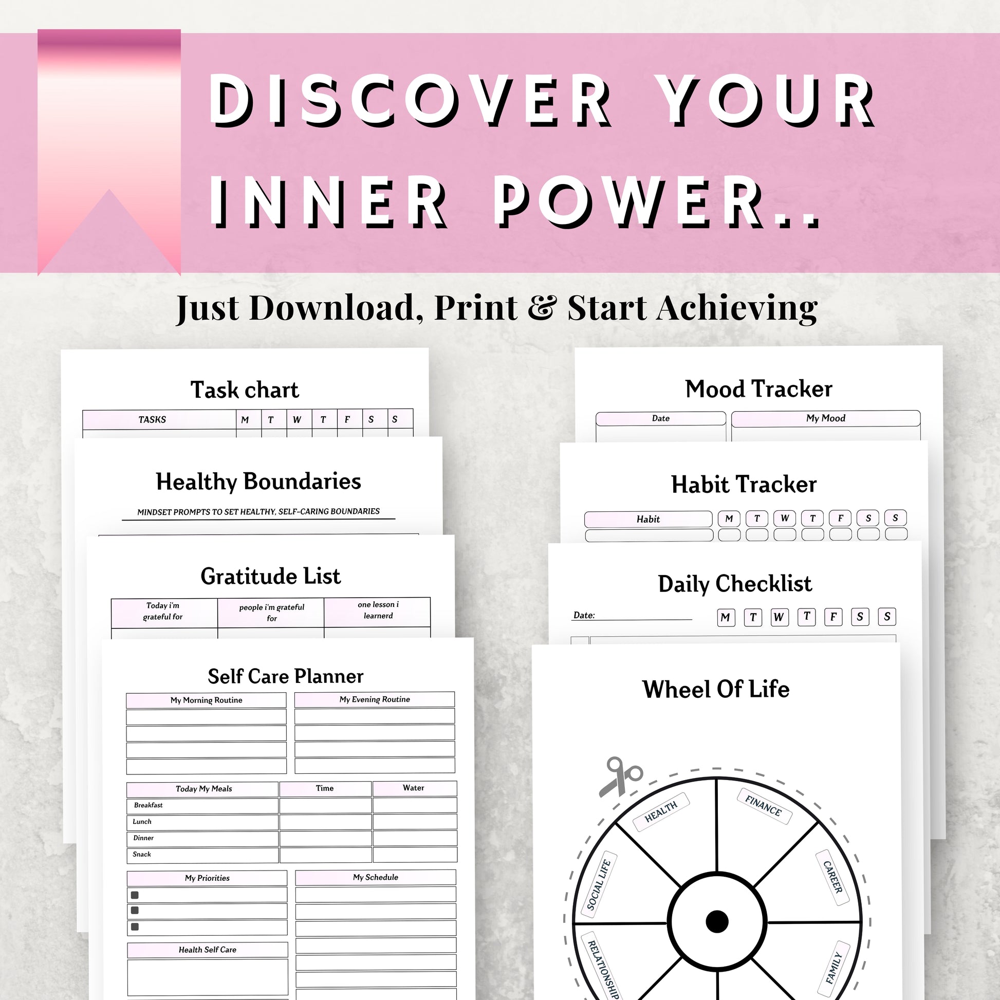 • Deep-Dive Goal & Life Assessment: Chart your course with the Wheel Of Life, a Bucket List, Goal Planner, and Action Planner to turn your visions into reality.