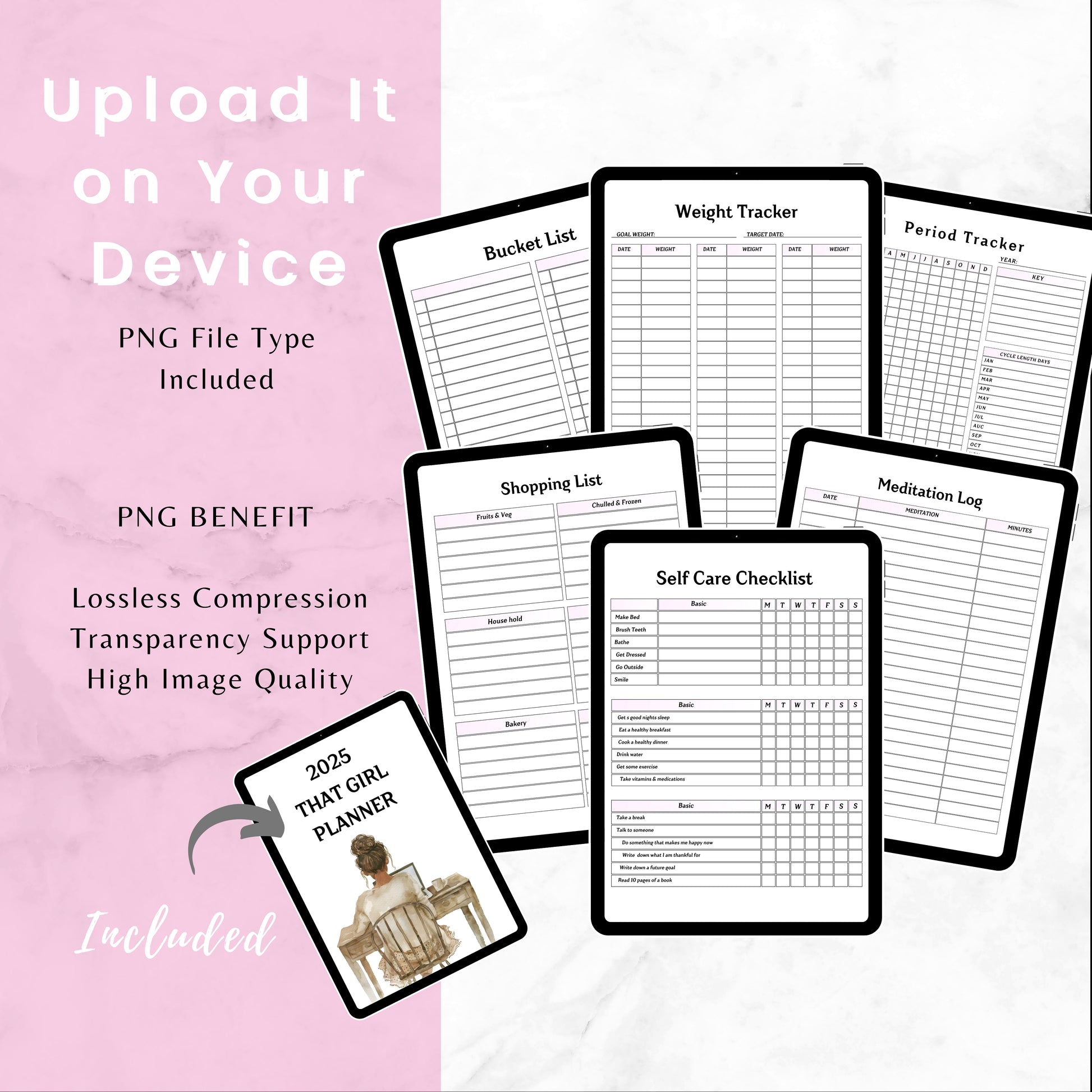 Become "That Girl" in 2026—the one who is organized, mindful, and radiantly in control. This exquisitely designed digital planner is your personal command center for orchestrating a life of purpose, peace, and productivity. Meticulously crafted for the modern woman who values holistic well-being and intentional living, it’s the perfect tool to plan, track, and manifest your best self across every facet of your world.