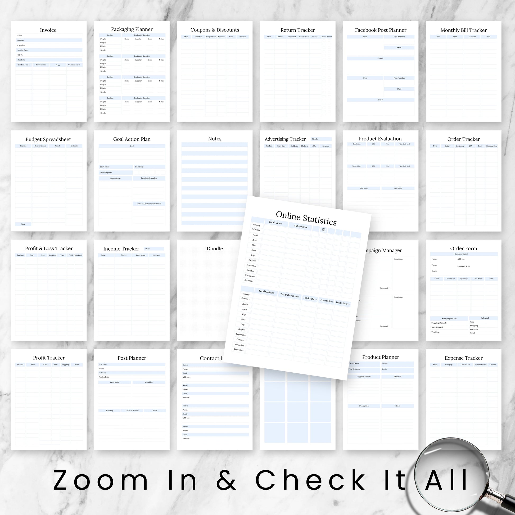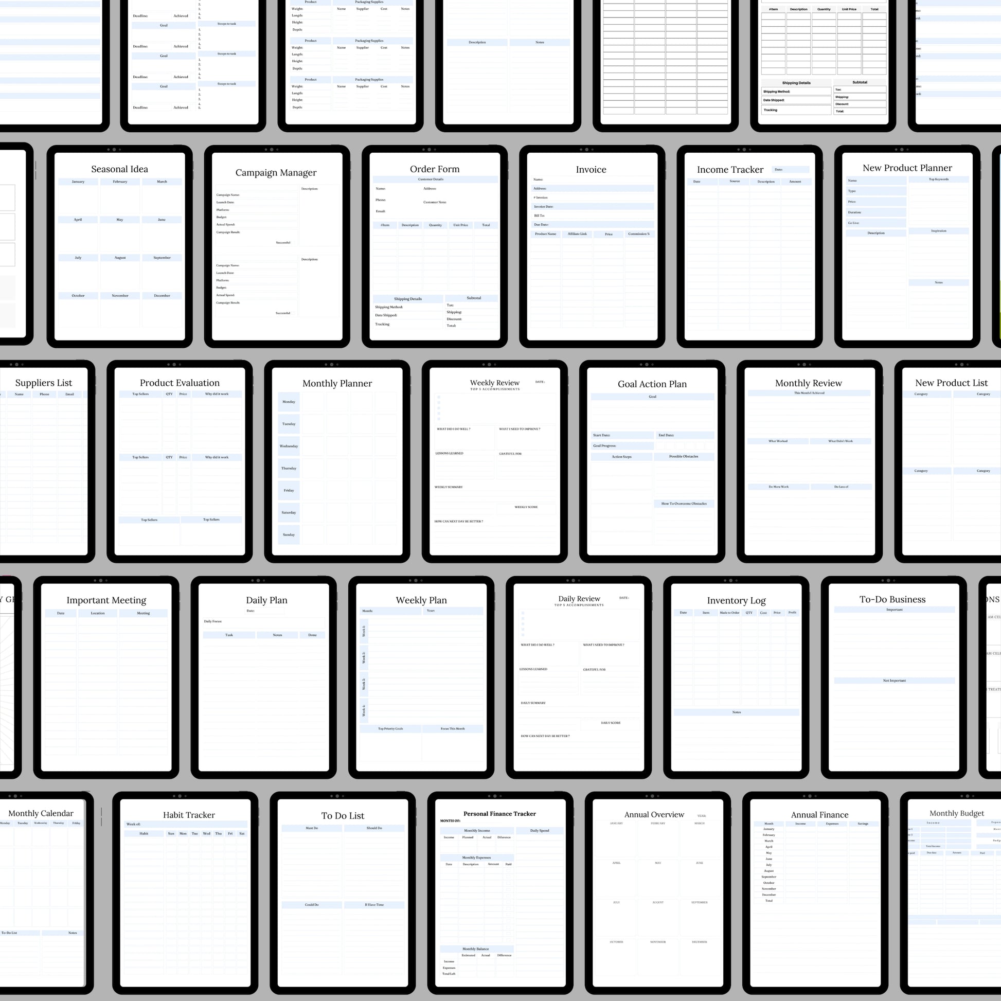 Command every aspect of your business with this definitive planning system. Designed for the ambitious entrepreneur, this planner integrates daily operations, financial tracking, and strategic marketing into one powerful hub. Achieve unprecedented clarity, control, and growth by having all your business essentials meticulously organized in a single, streamlined toolkit.